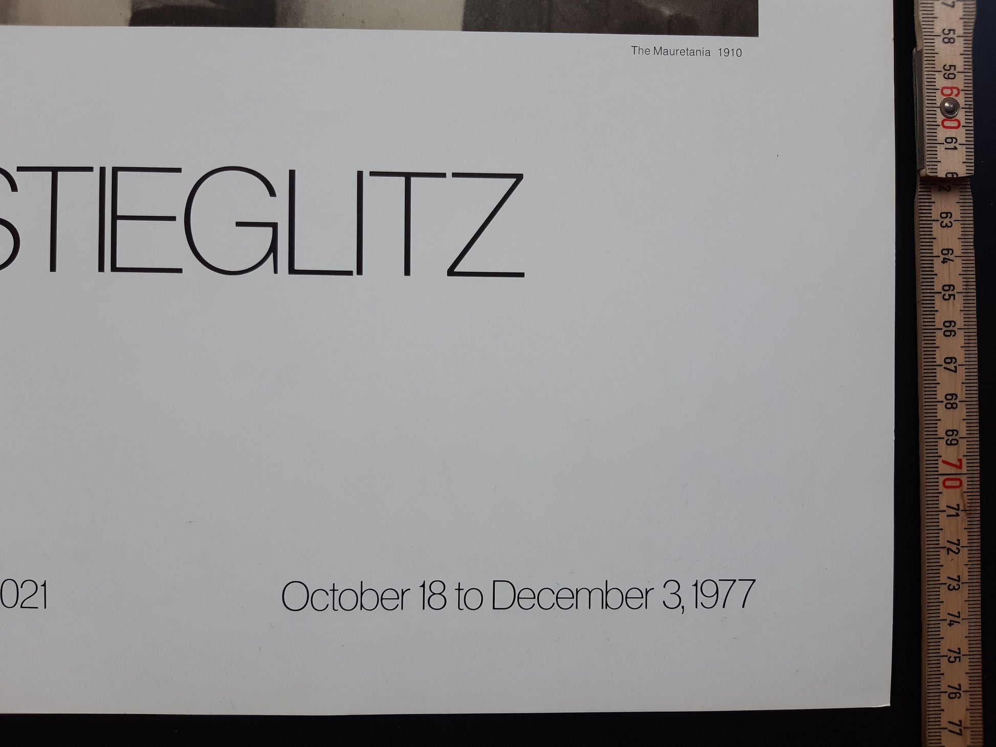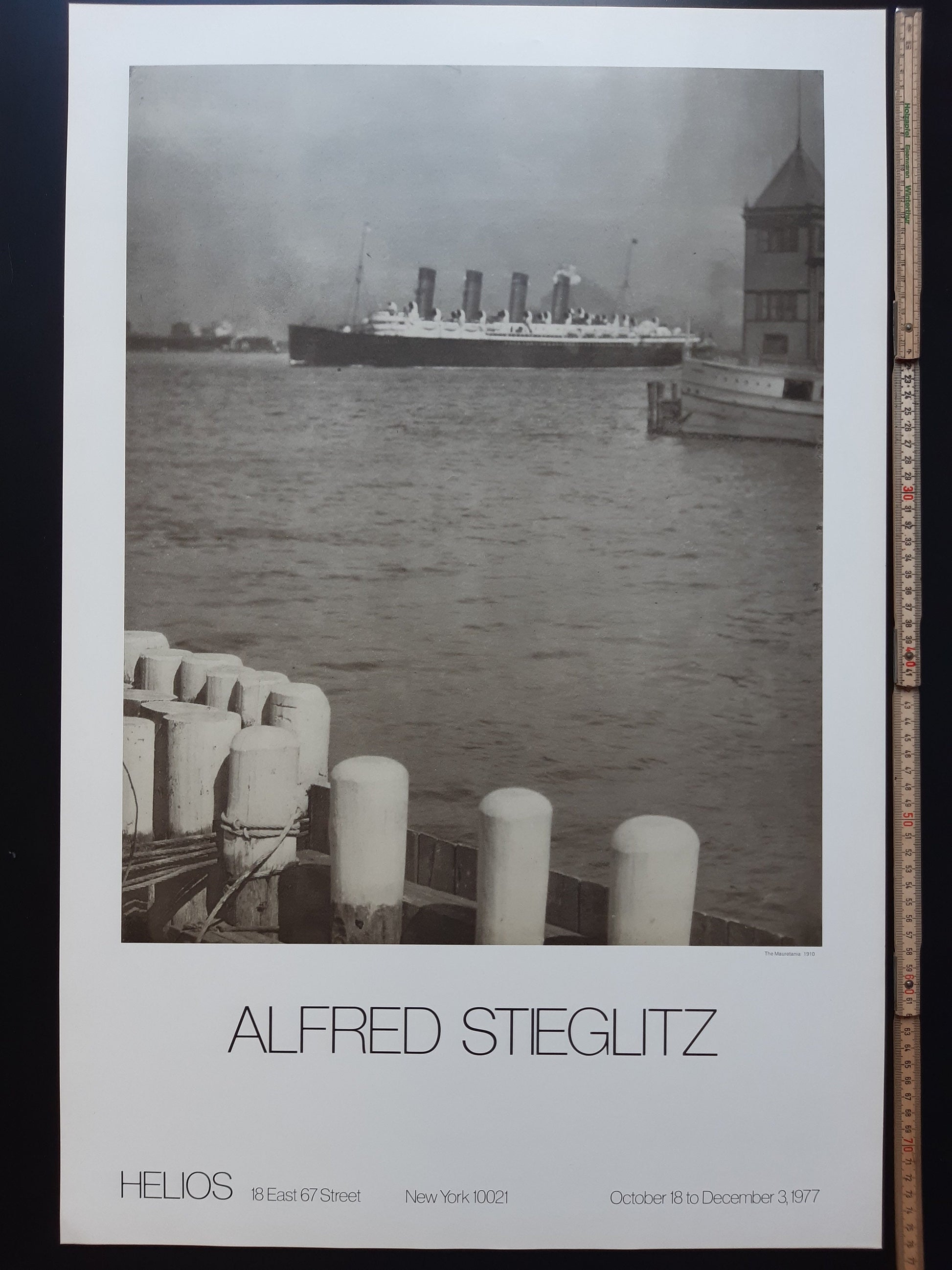 This is an original photo art exhibition poster advertising an exhibition at the Helios Gallery in New York in 1977. The artist featured is Alfred Stieglitz. The poster is in very good condition. It featuresers the artwork "The Mauretania", taken 1910.