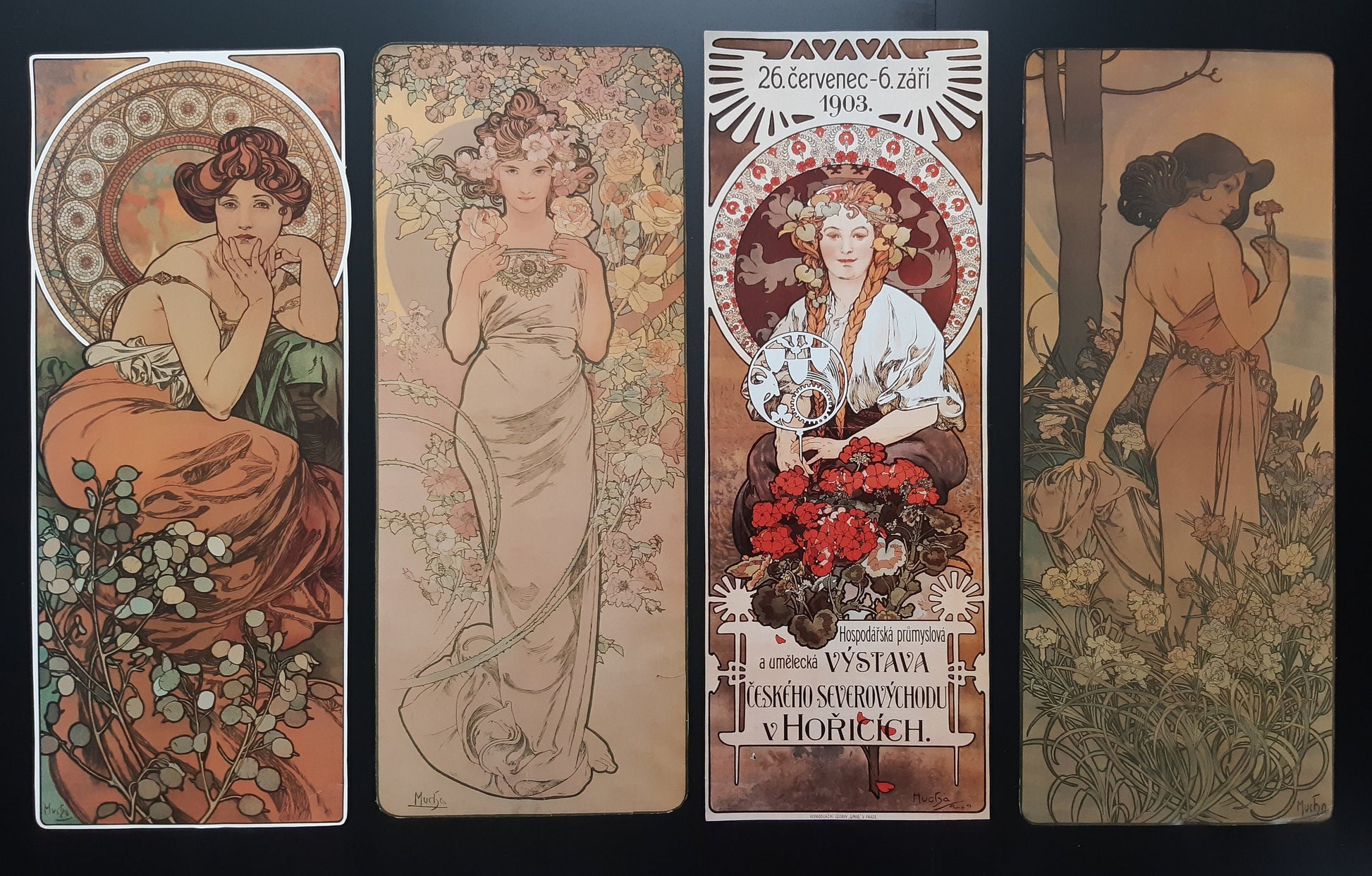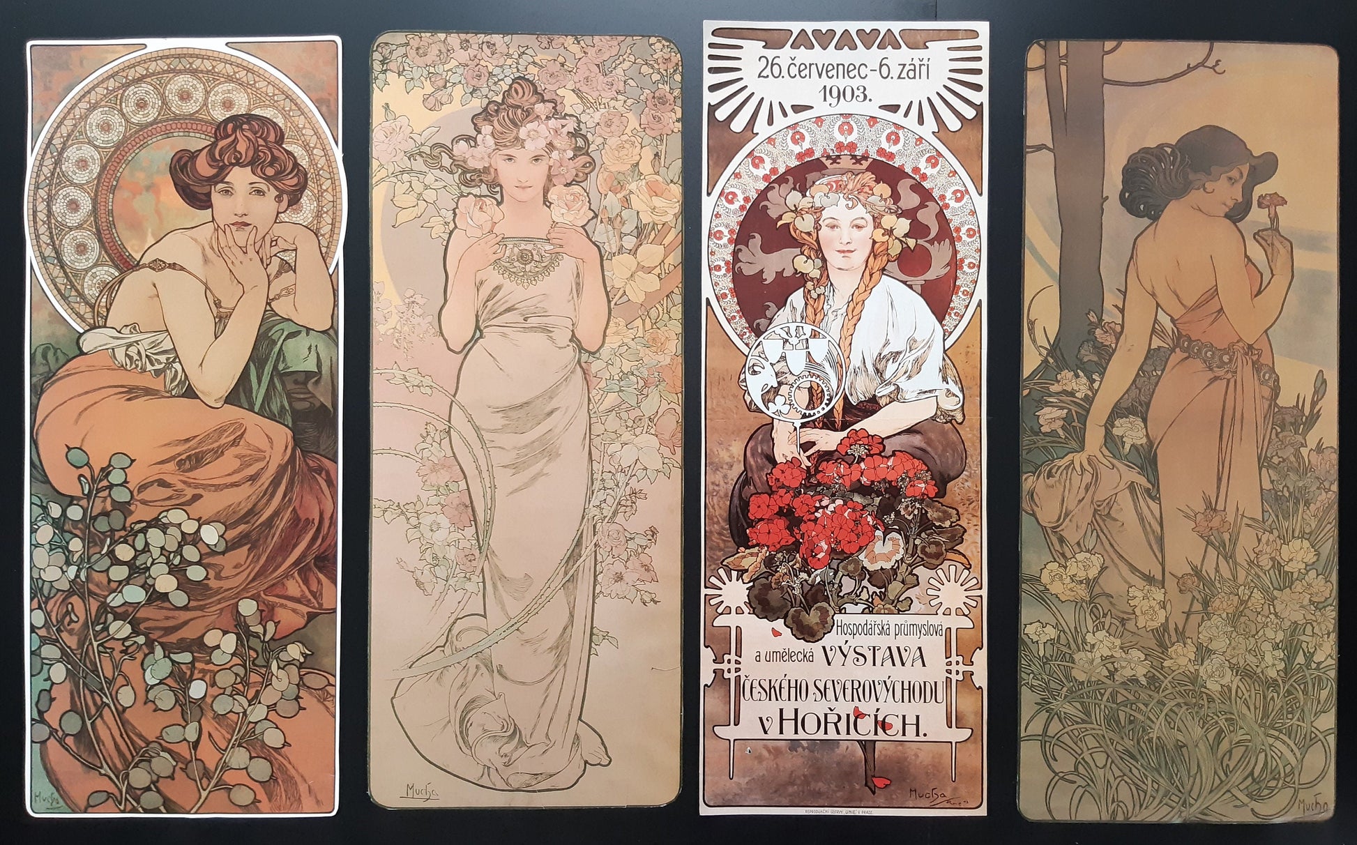 Alphonse Mucha art print lot of 4 - 7.3"×18.1" (18.5×46cm)