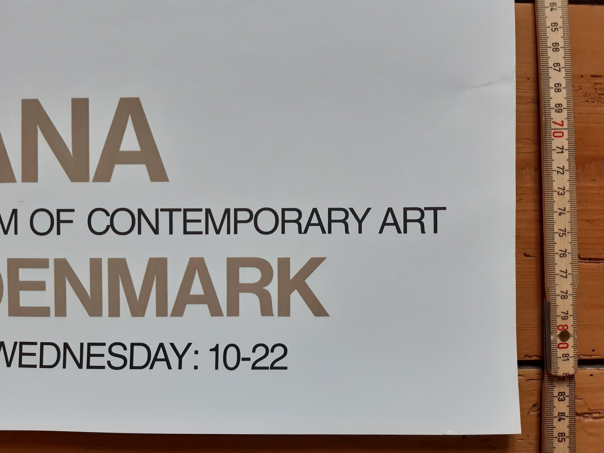 Original, beautiful art poster advertising the Louisiana Museum in Humebaek, Denmark. It has been produced 1987 along with a poster in similar style with an artwork by David Hockney.