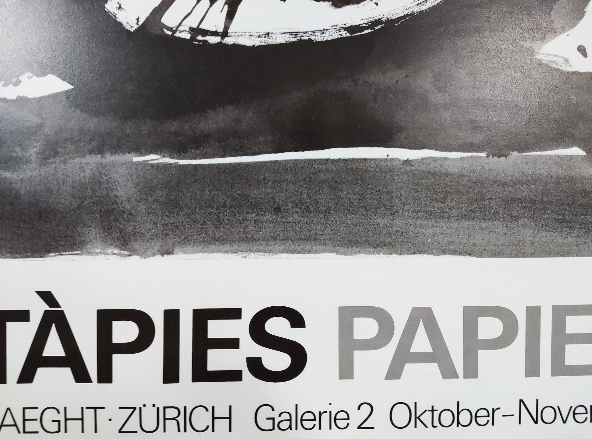 Beautiful art poster by spanish Antoni Tàpies feauturing an abstract artwork with black stripes and advertising an exhibition at the Gallerie Maeght in Zurich in 1981.
