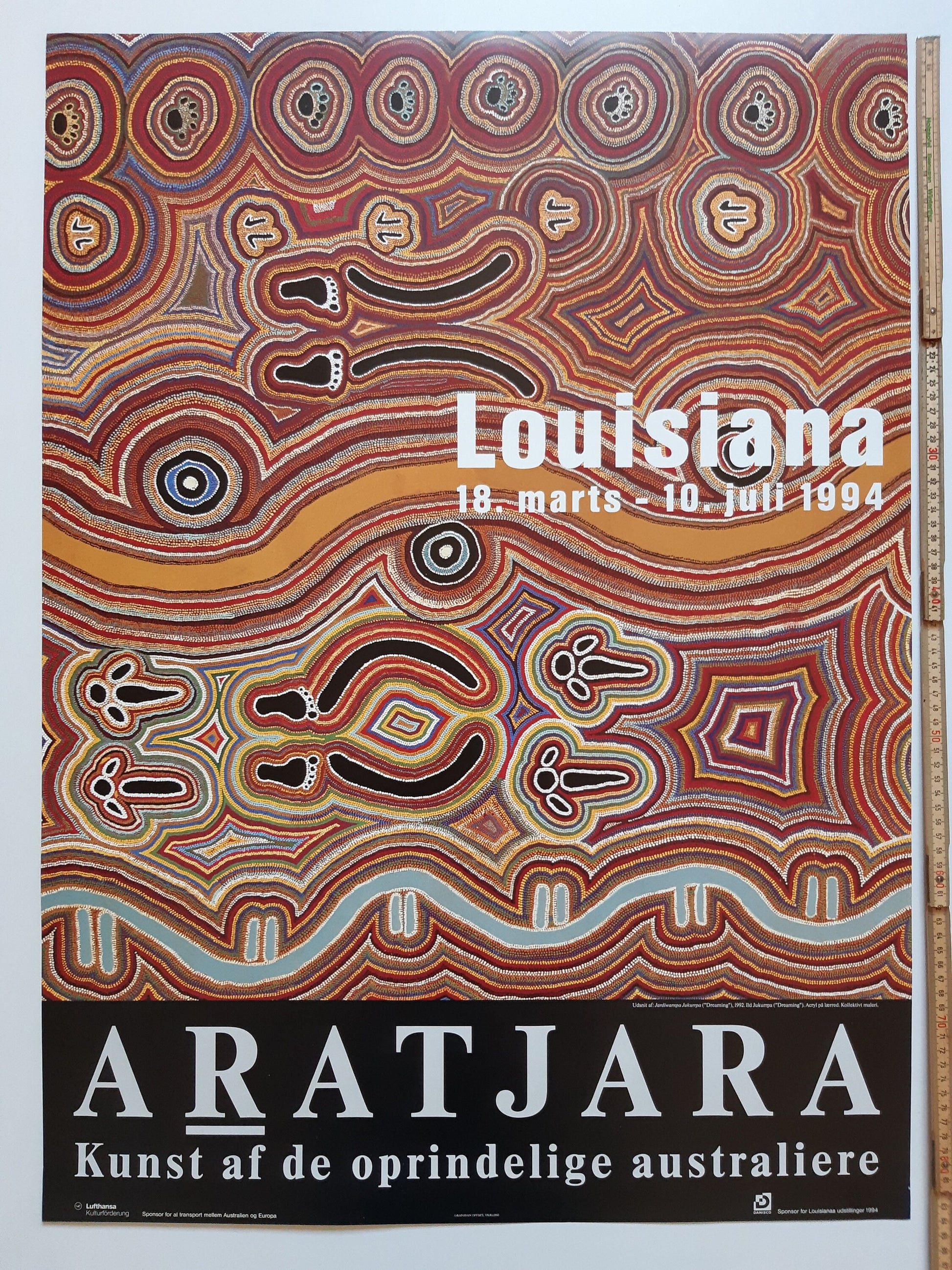 This original poster has been designed to advertise an exhibition at the Louisiana Museum in Denmark about early Australian native people art. The poster is in near mint condition.