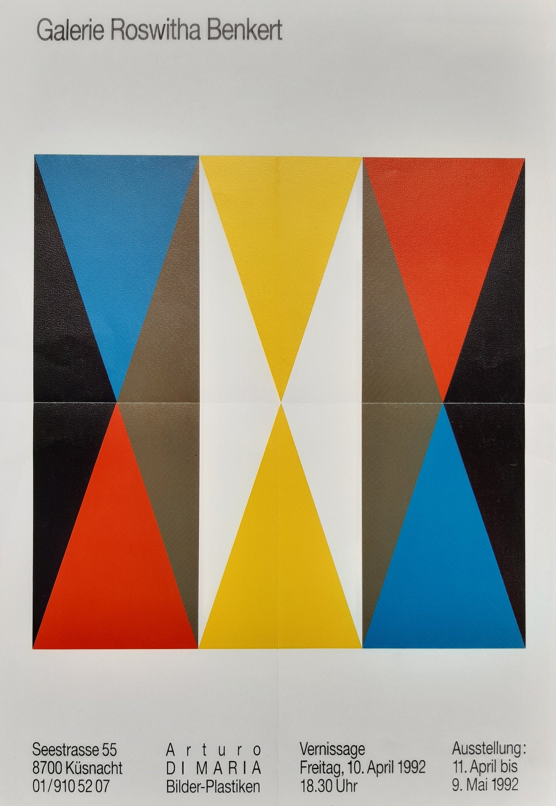 This is an original art exhibition poster advertising an exhibition in 1992 in Switzerland. It despicts an artwork by Arturo Di Maria, a Swiss artist born 1940
