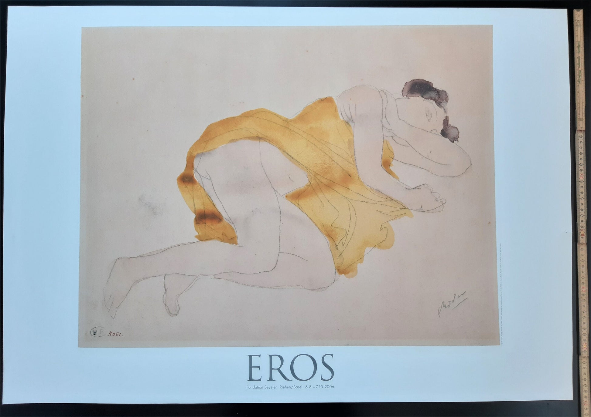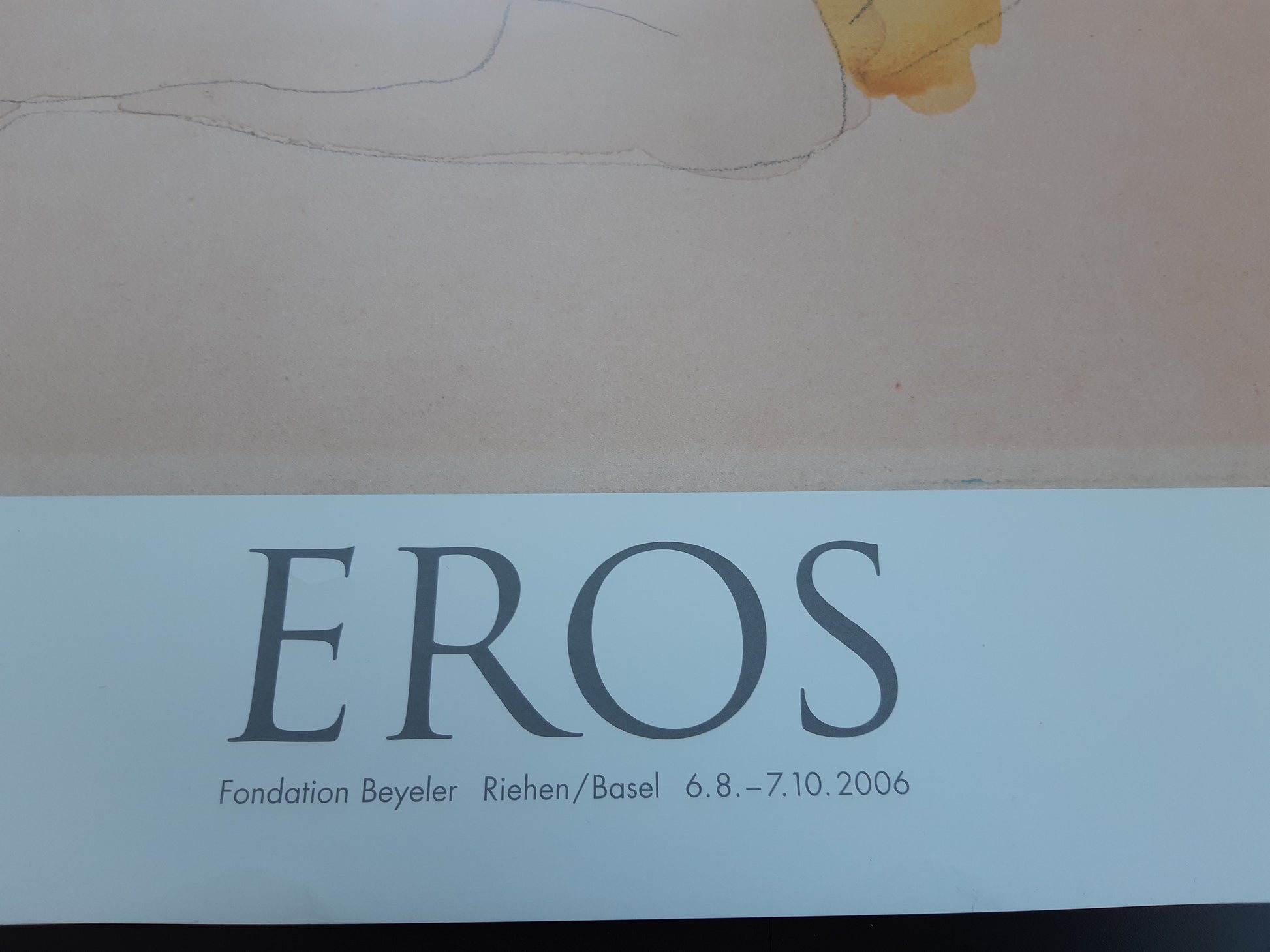 This is an original art poster featuring a sketch by Auguste Rodin. The poster has been produced to advertise an exhibition at Fondation Beyeler in Riehen, Switzerland about erotic art.
