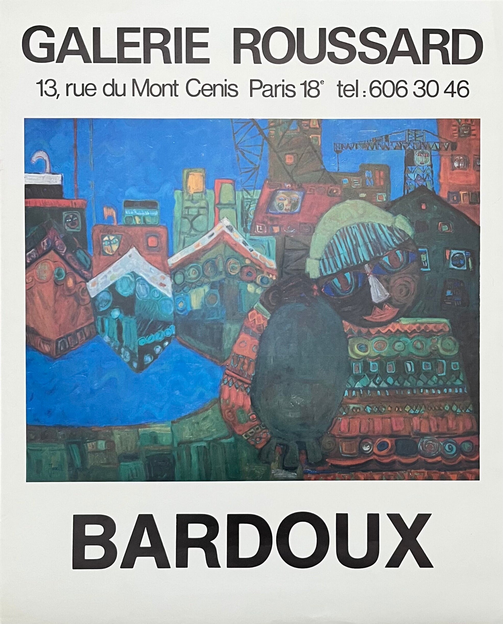 This is an original art poster advertising Galerie Roussard. The exhibition features the works of Bardoux.