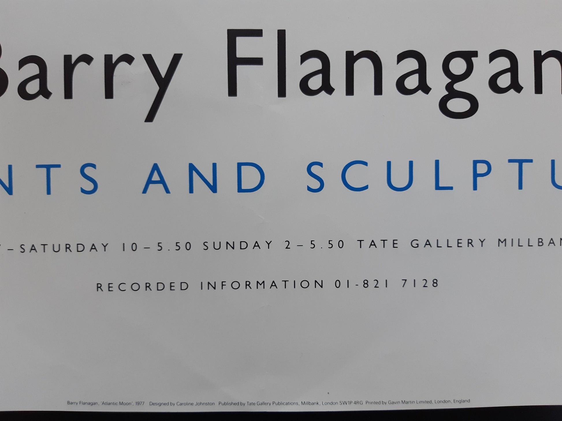 This original poster has been designed for the Barry Flanagan exhibition 1986 at the Tate Gallery, London, UK.