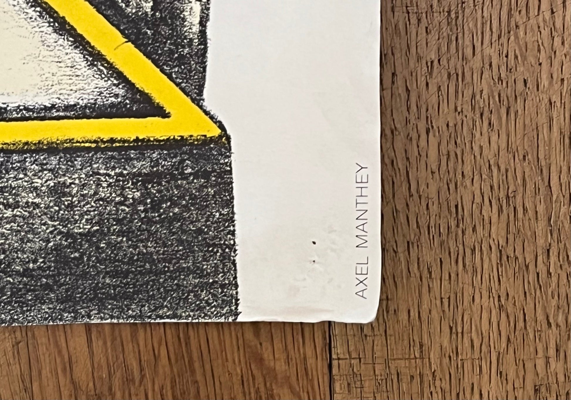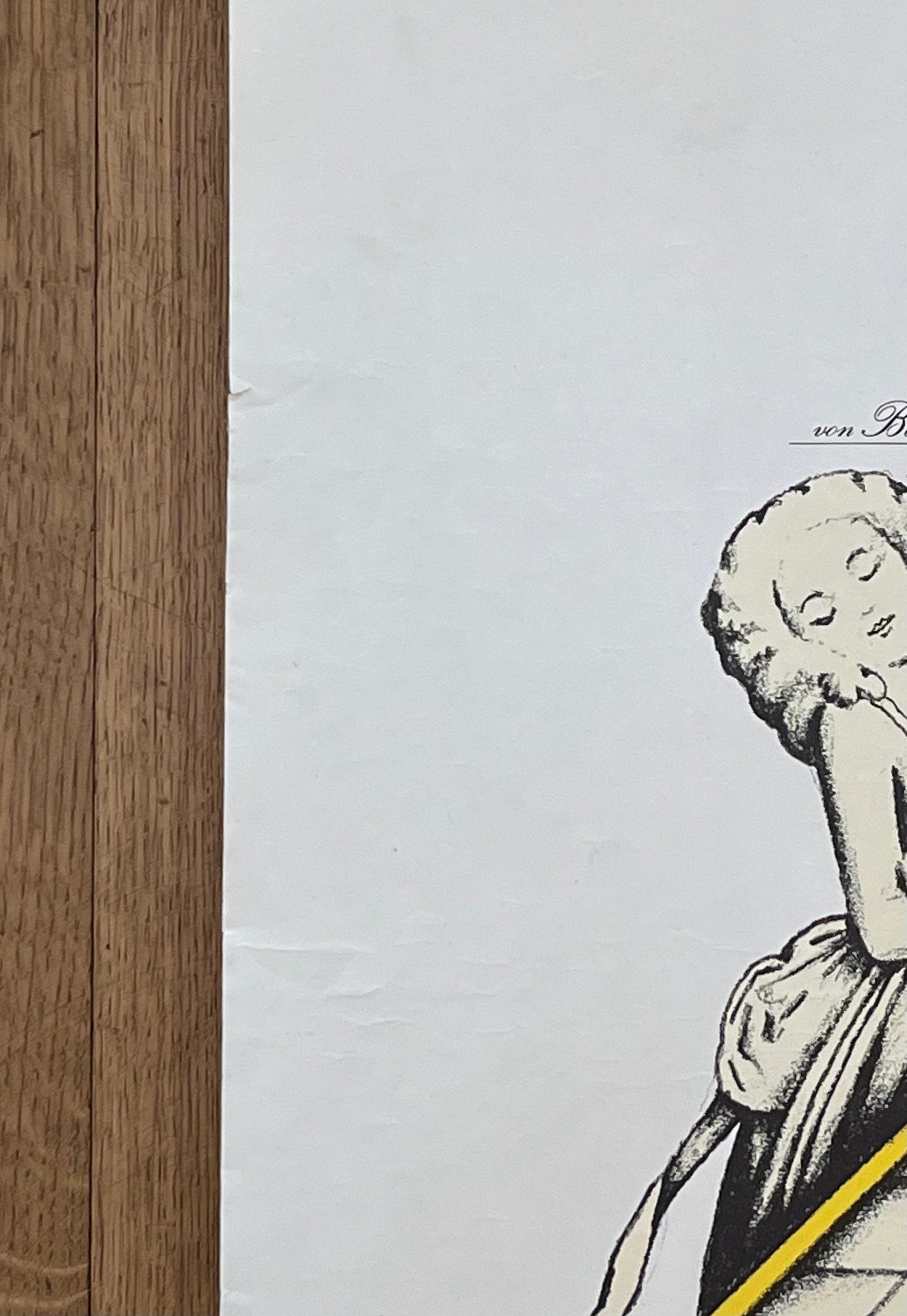 Beautiful art poster by Axel Manthey featuring a scene from "Der tolle Tag or Figaro's Wedding", a comedy in five acts by Pierre-Augustin Caron de Beaumarchais. It is a silkscreen-lithography and in used condition with pinholes, stains, signs of handling and ripped corners.