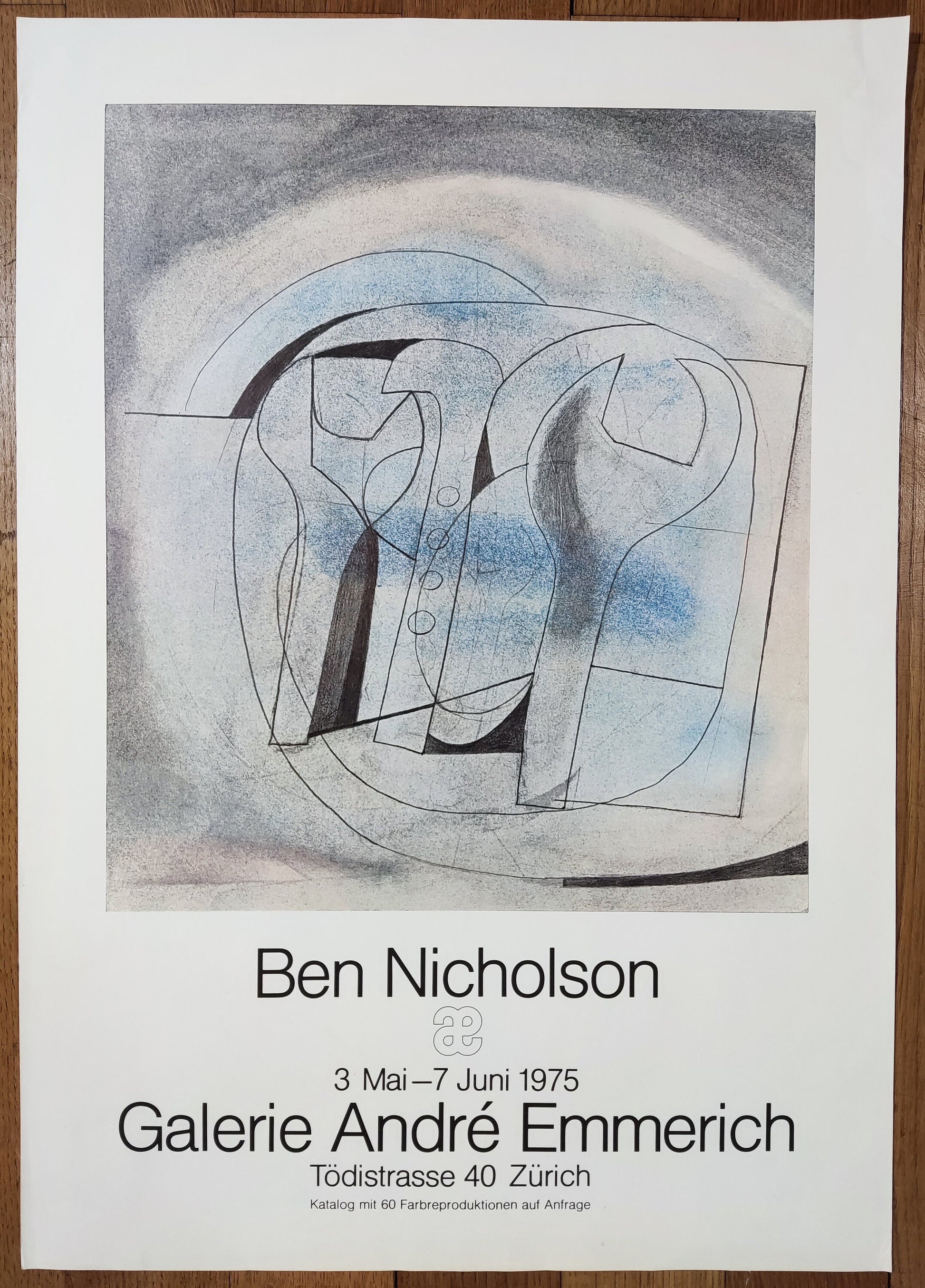 This is a beautiful art poster by british Ben Nicholson advertising an exhibition at the Galerie André Emmerich in Zurich, Switzerland in 1975.