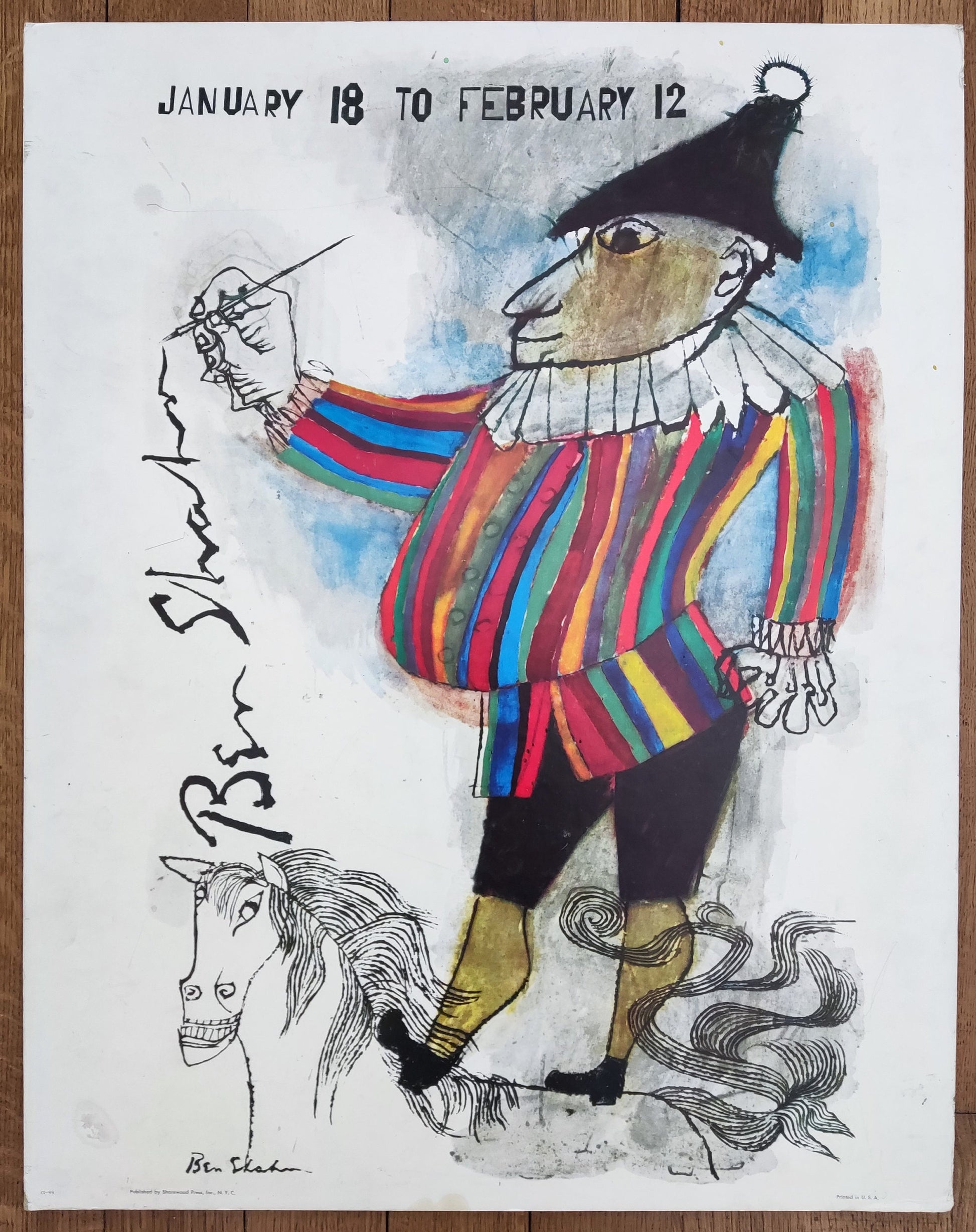 This is an original art poster made by Ben Shahn, published in the 1950ties. Ben Shahn (1898 - 1969) was a Lithuanian-born American artist. He is best known for his works of social realism, his left-wing political views, and his series of lectures published as The Shape of Content.