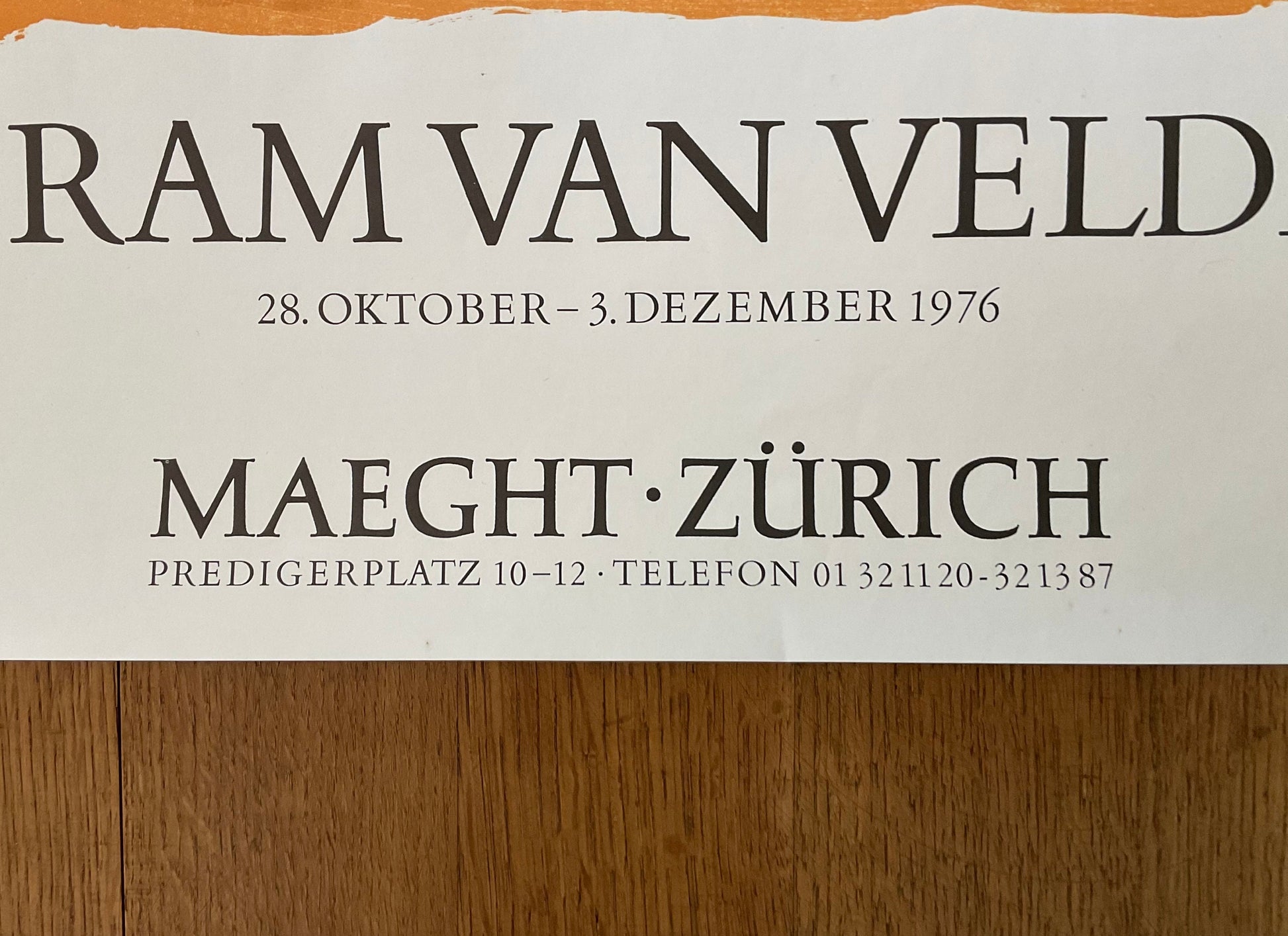 This is a beautiful original art poster featuring an artwork by Bram Van Velde and advertising an exhibition at the Gallery Maeght in Zurich in 1976.