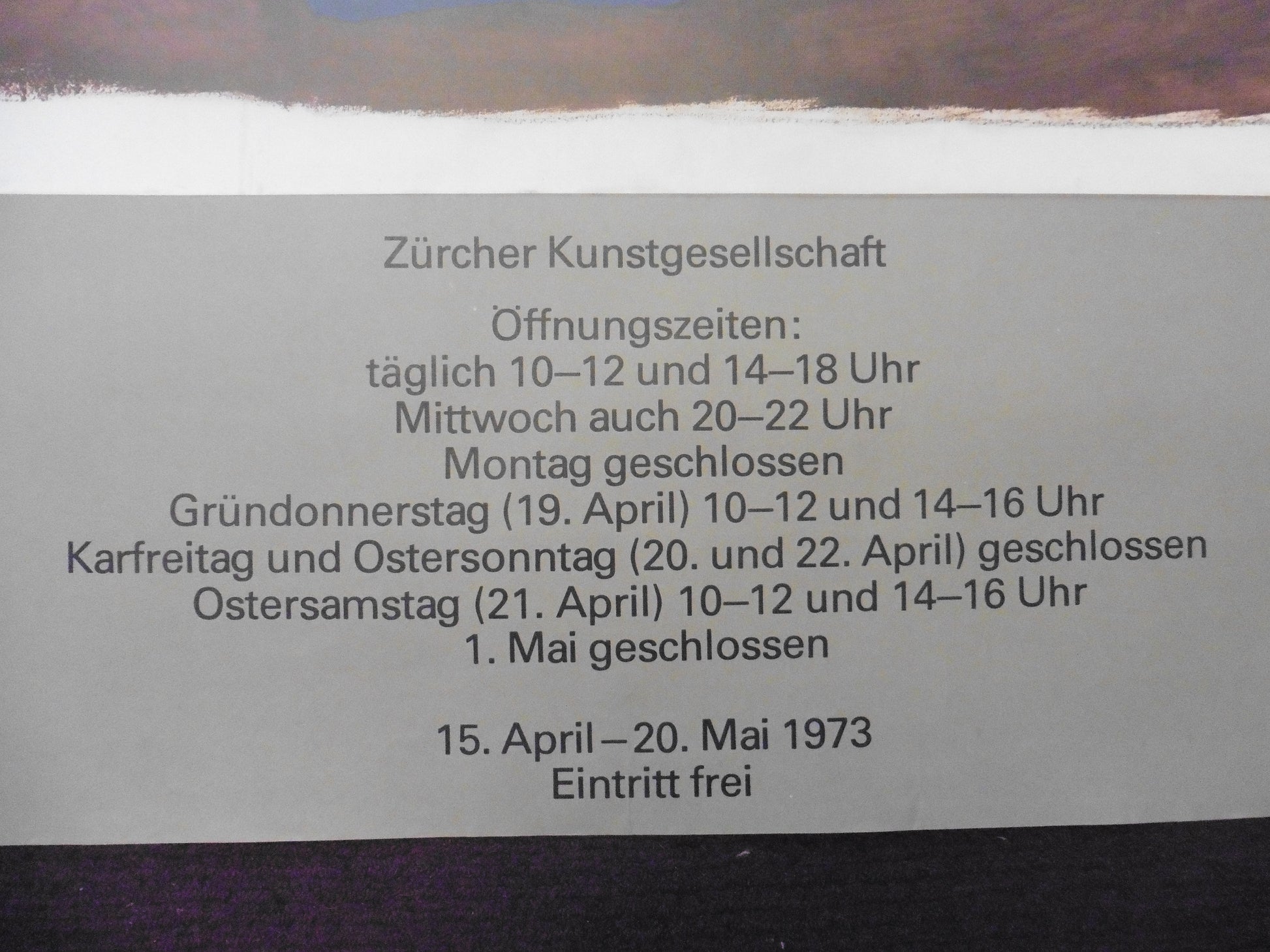 This is an original vintage art poster by Carlotta Stocker (Swiss, 1921 - 1972) for her exhibition in Zurich, Switzerland in 1973.