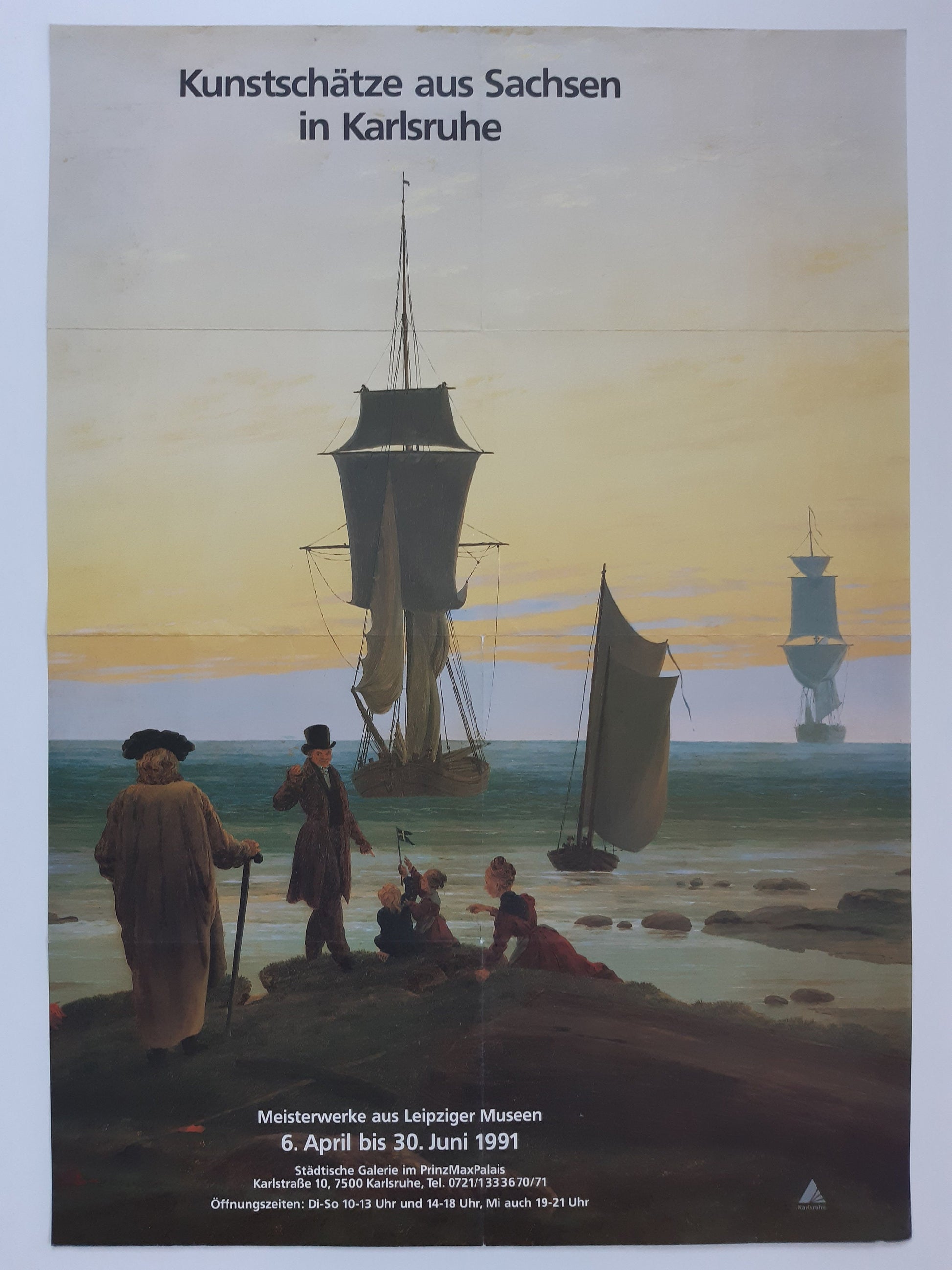 Art exhibition poster depicting an artwork painted by Caspar D. Friedrich. The poster advertises an exhibition in Karlsruhe, Germany in 1991.