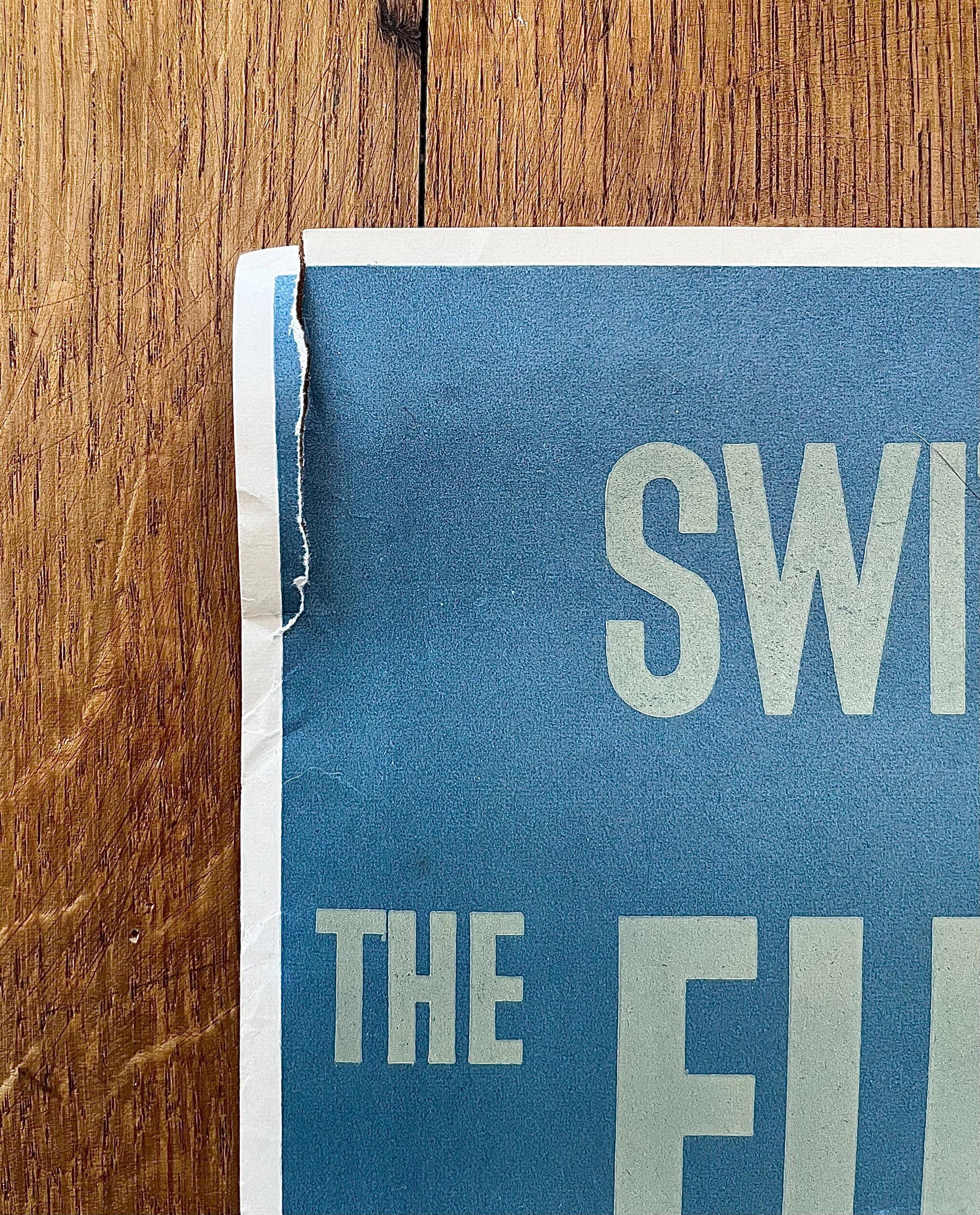 The poster is in a used condition with a long tear at the upper left corner, some rolling marks and a bit of foxing at the back. There are also signs of handling along the borders.