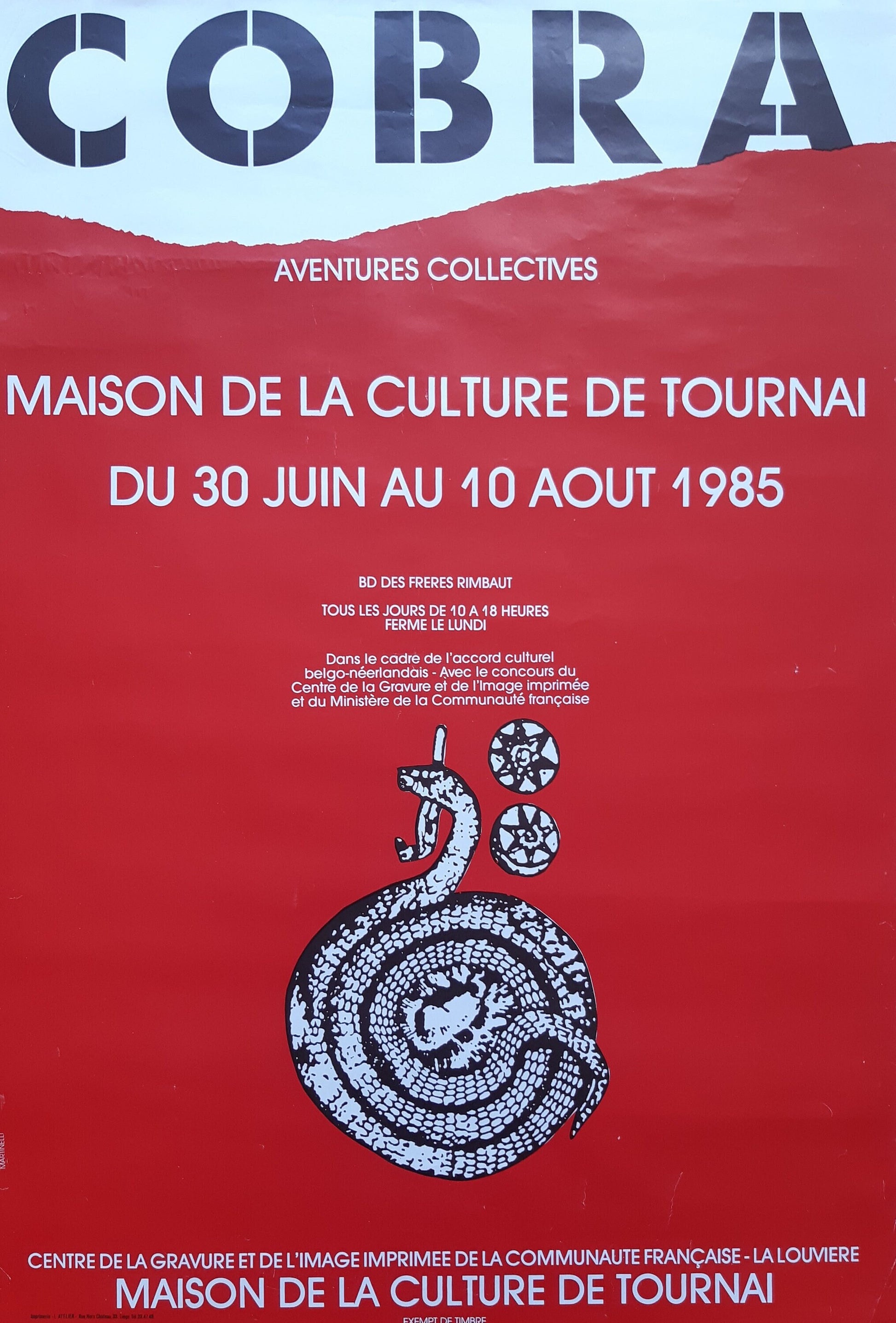 This is an original art poster advertising an exhibition in Tournai (Belgium) in 1985 about art of the art movement CoBrA.