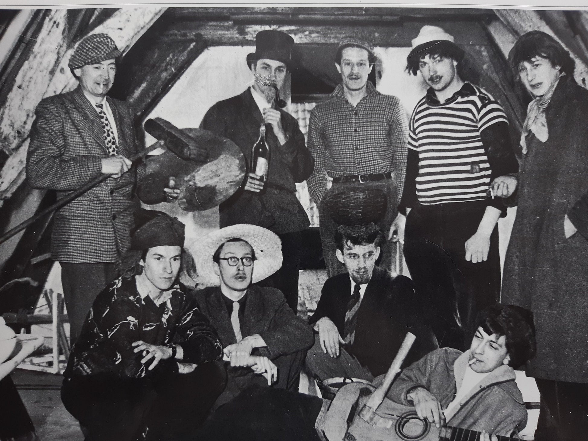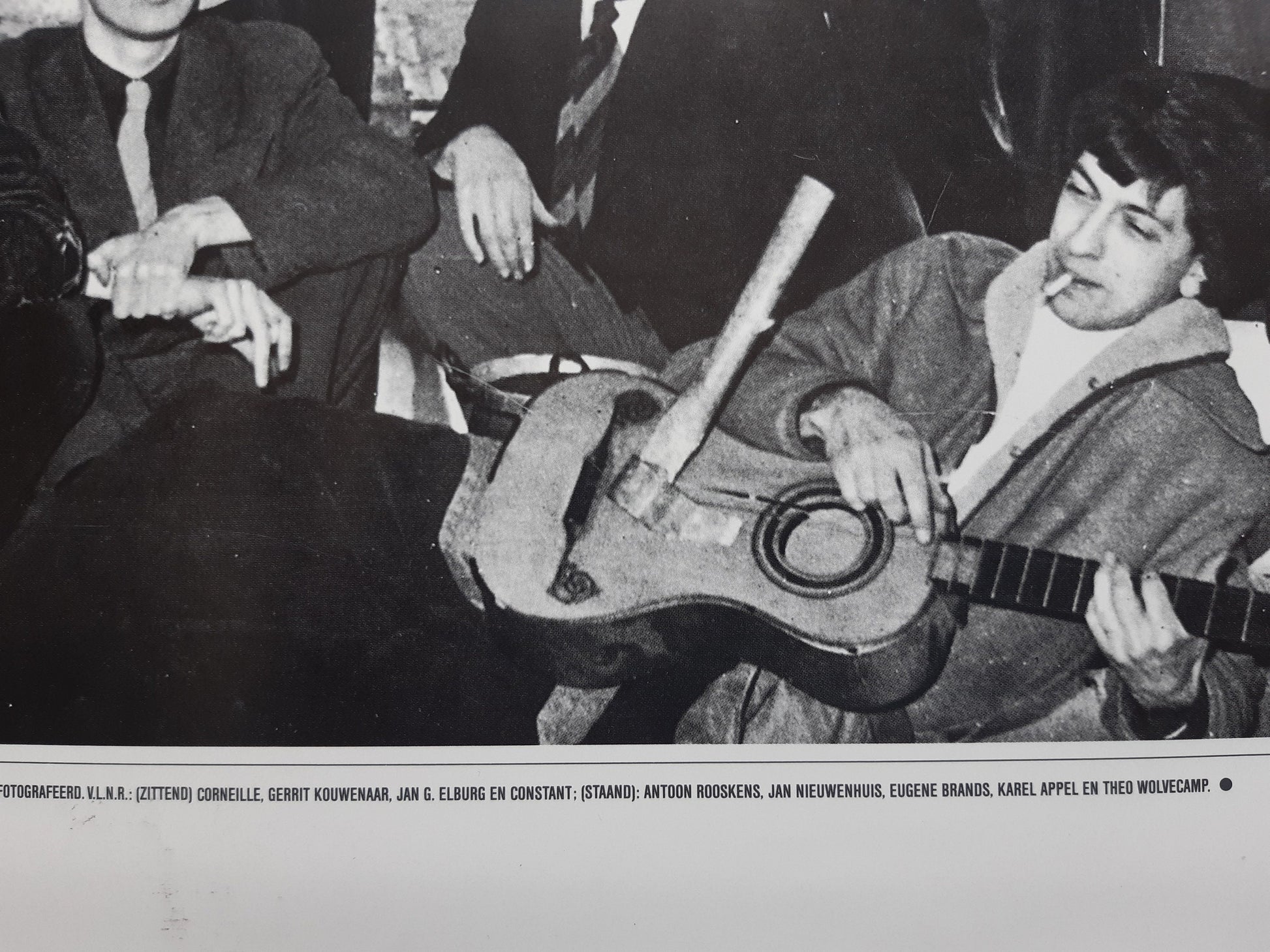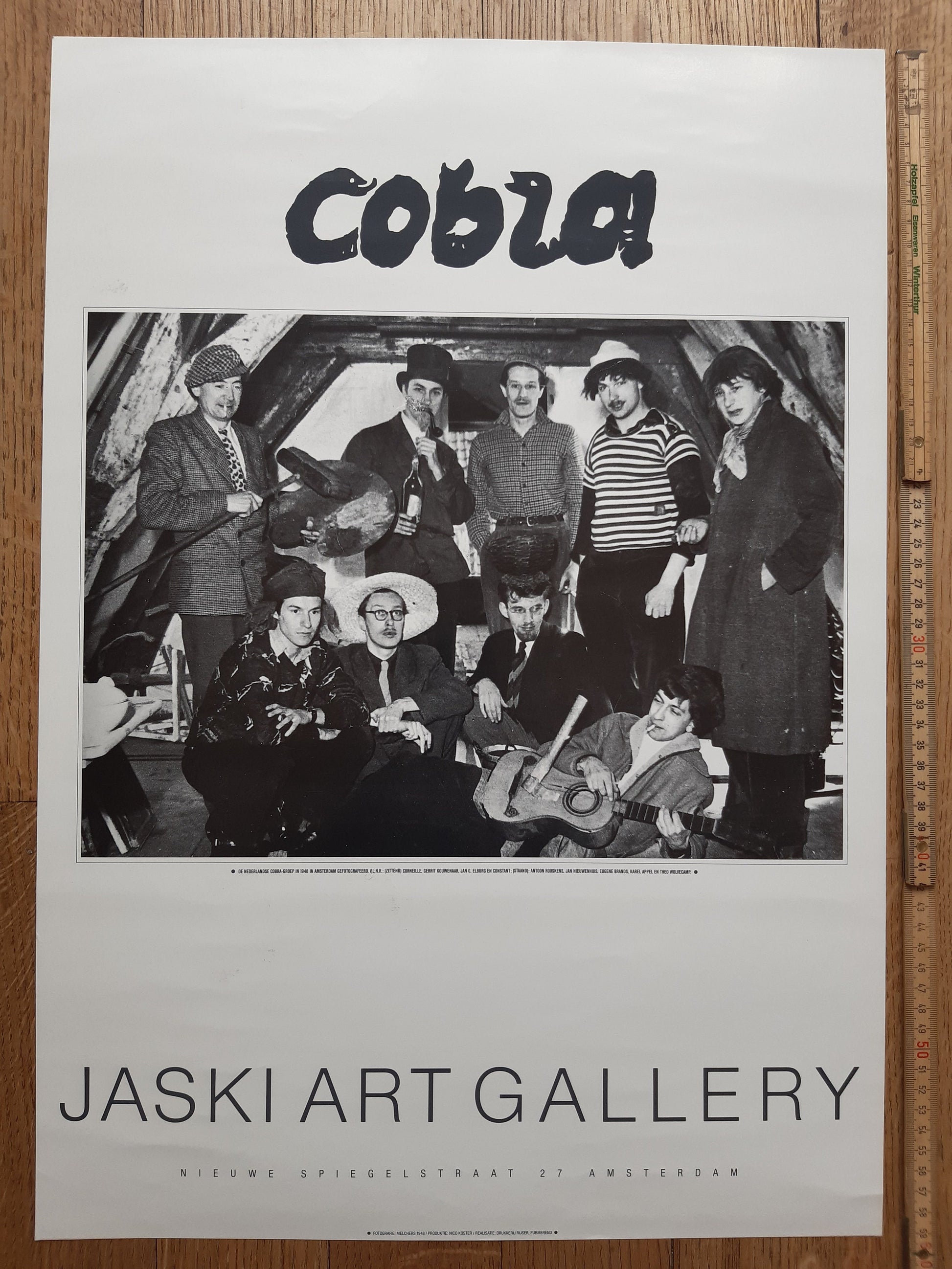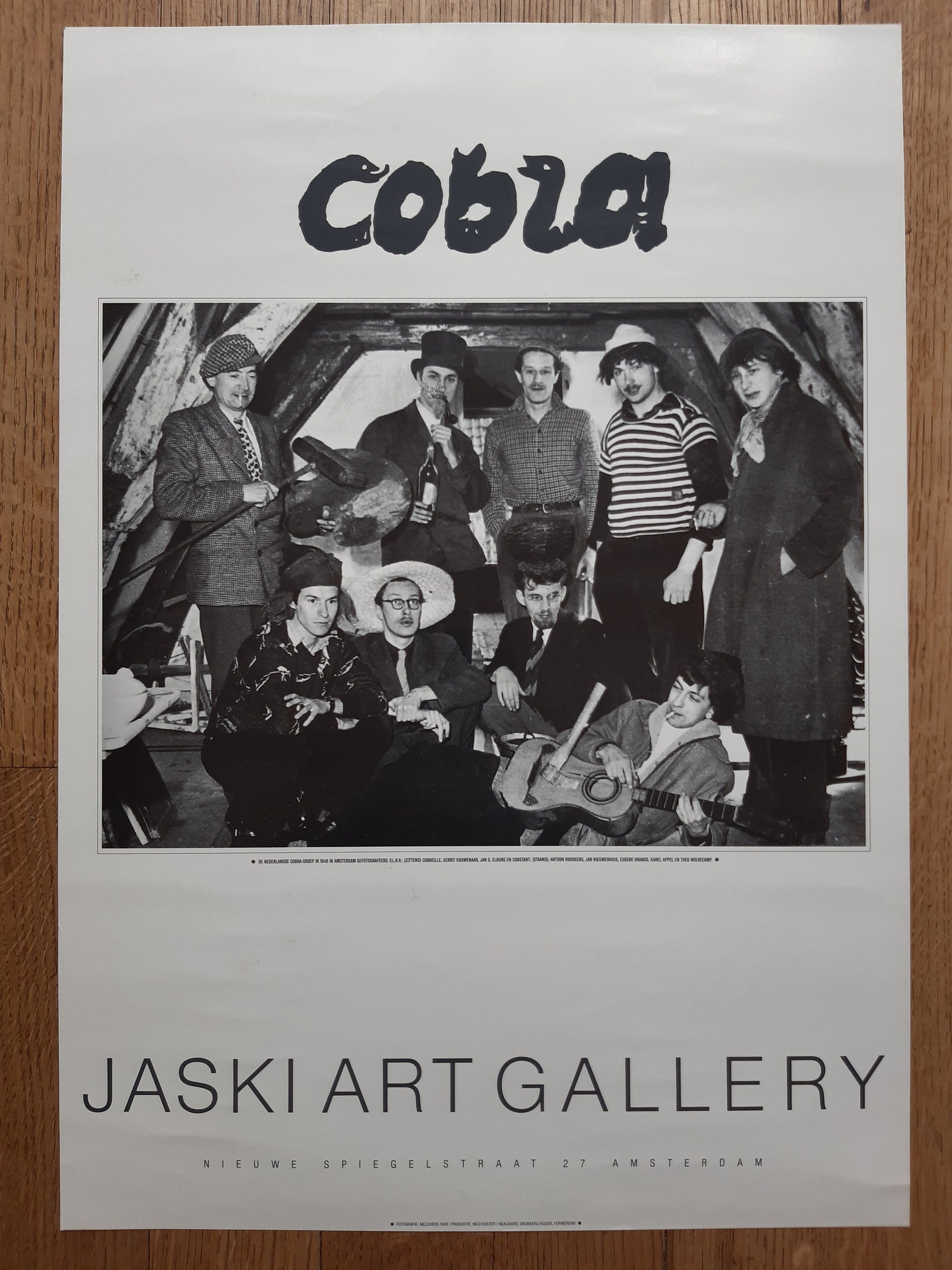 This is an original photo poster advertising the Jaski art Gallery in Amsterdam, using an ancient photograph with members of the CoBrA art movement.