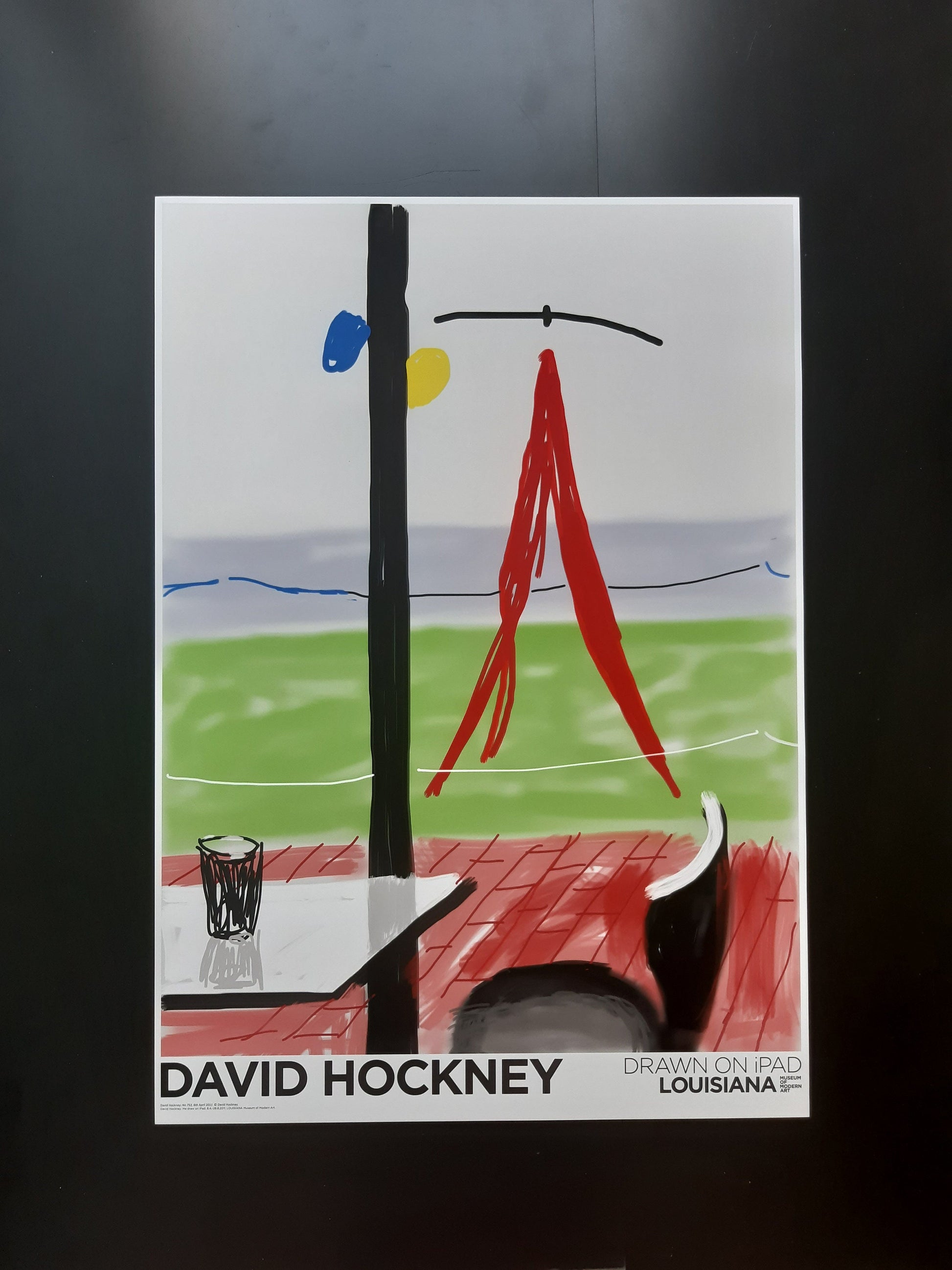 This is an original art poster by David Hockney. It has been released by the Danish Museum Louisiana in Copenhagen. The exhibition "Me draw on Ipad" took place 2011. The poster has been released later in a second edition by Louisiana but the two editions are identical (even the printing pattern) and not distinguishable.