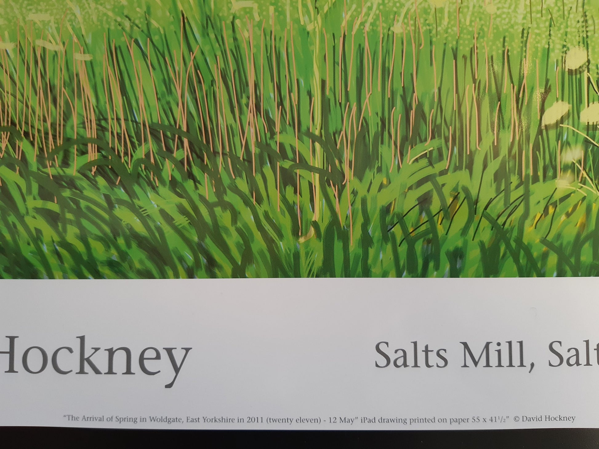 This is an original art poster by David Hockney. It reproduces "12 Mai", one of the many paintings of the "Arrival of Spring" series. The painting was drawn on IPad, he was the first of the famous artists who used this technique for his paintings.