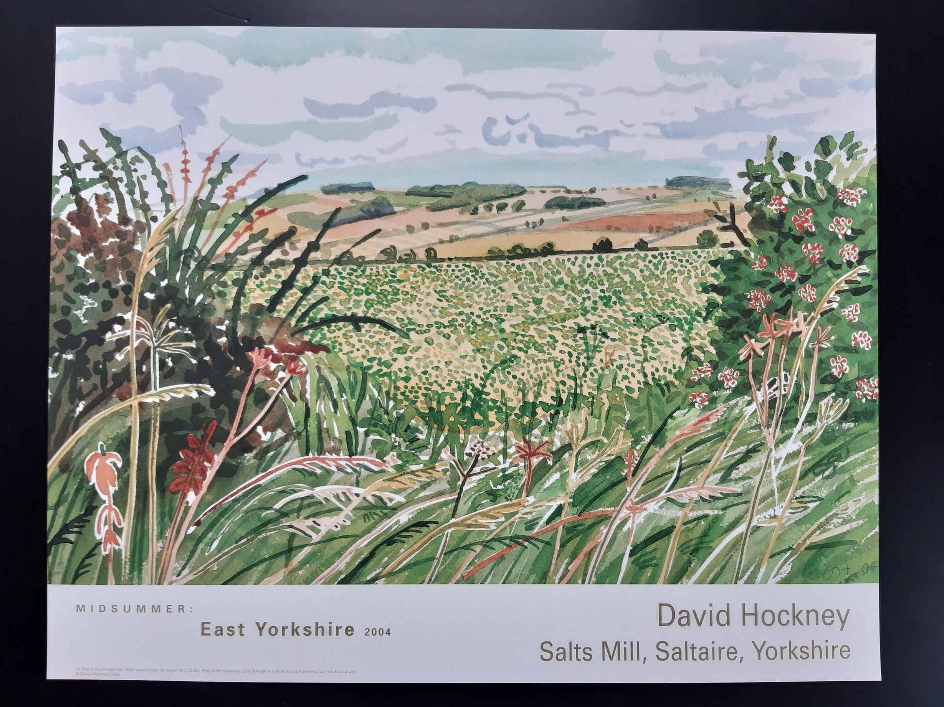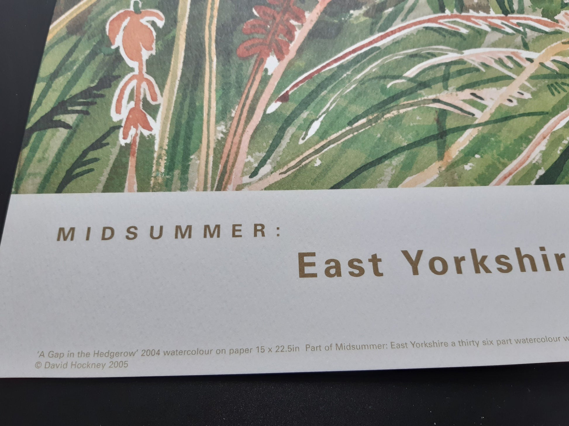 This is an original art poster by David Hockney. It reproduces "Gap in the Hedgerow", painted in 2004.
