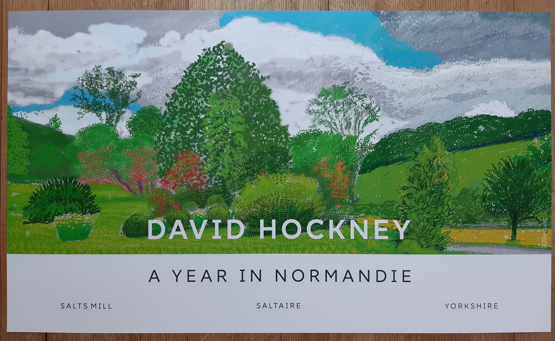 This is an original art poster by David Hockney. It features a very beautiful Ipad painting out of the "Year in Normandie" series, painted 2020. The poster is in near mint condition.
