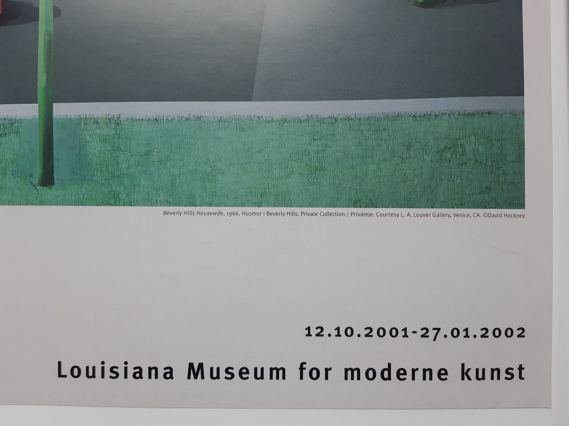 This is an original art poster by David Hockney. It has been designed to advertise the large exhibition at Louisiana Museum in Kopenhagen, Denmark 2001.