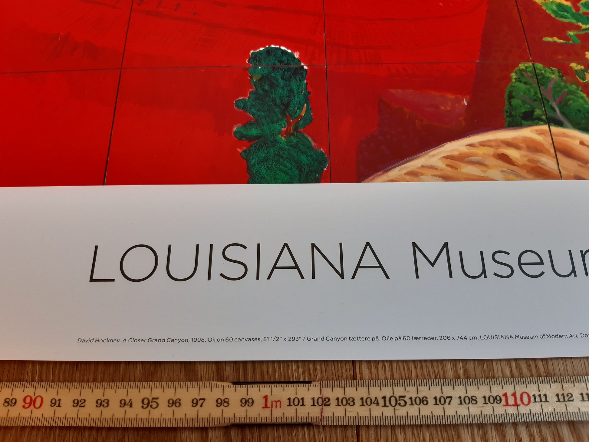 This is an original art poster by David Hockney. It has been designed for the Louisiana Museum in Kopenhagen, Denmark in 2011. It is depicting the artwork "A closer Grand Canyon", painted in 1998.