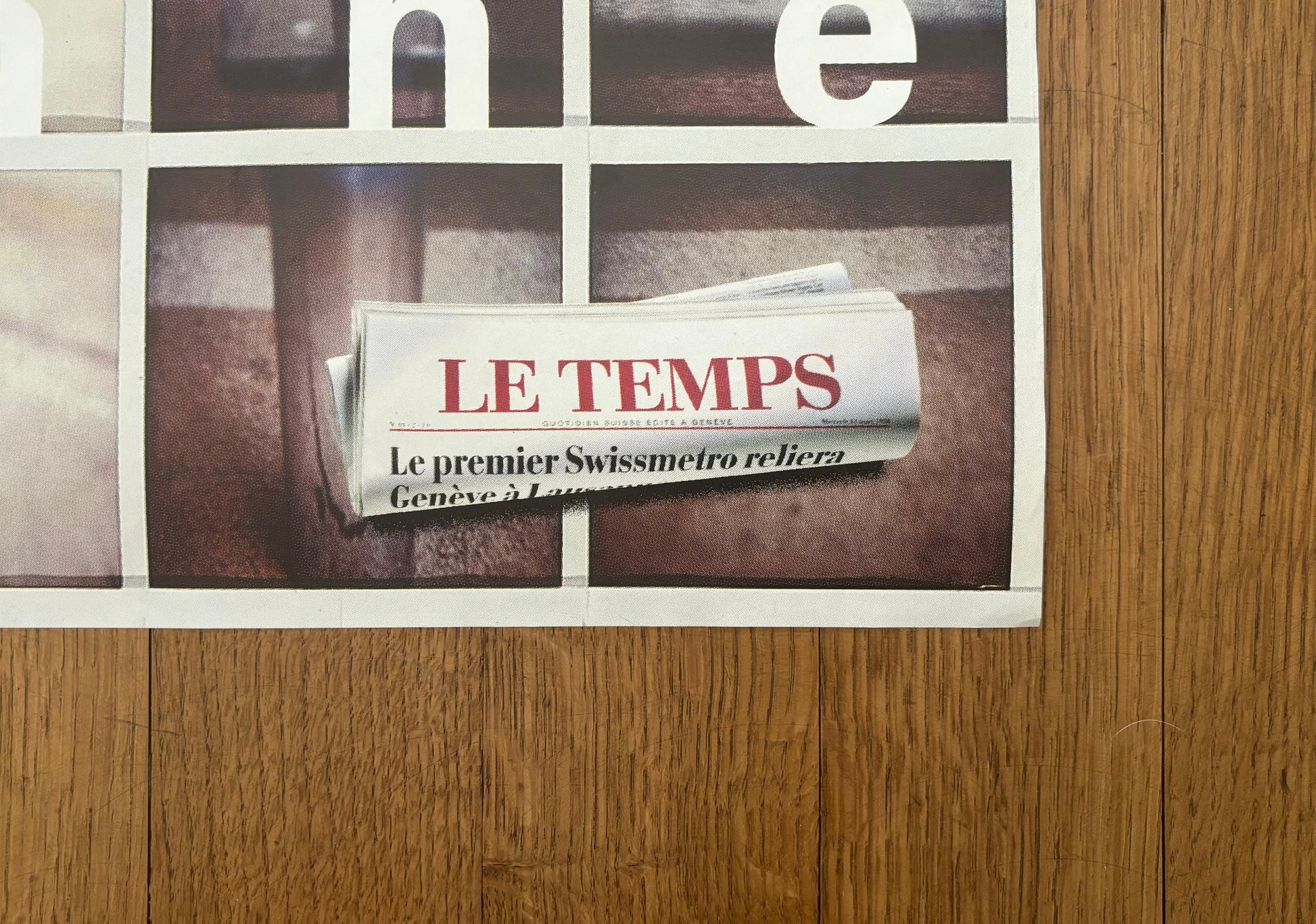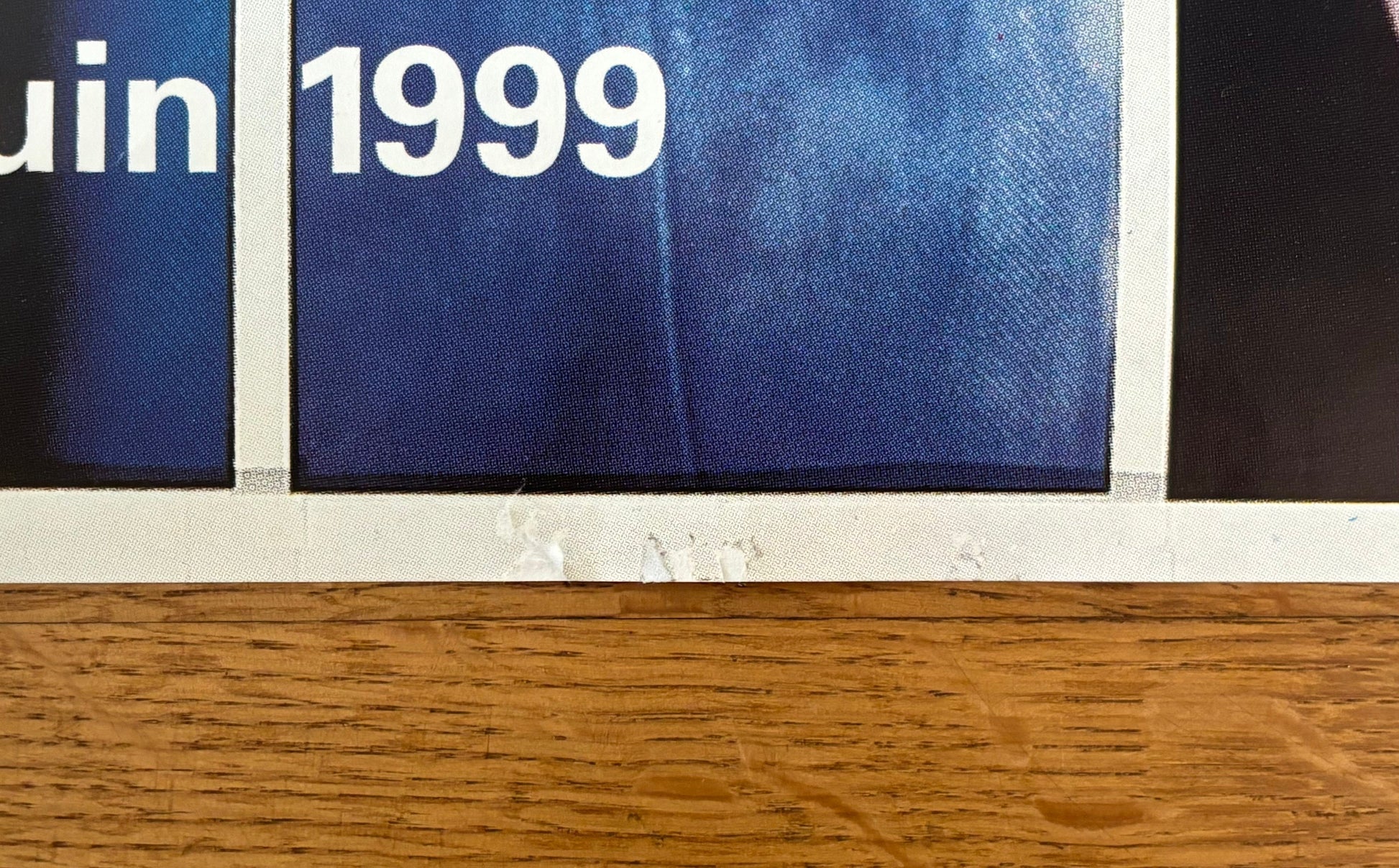 The poster is in used condition with signs of handling along the borders, knitters all across the surface and a ripped off layer of paper in the middle of the bottom.