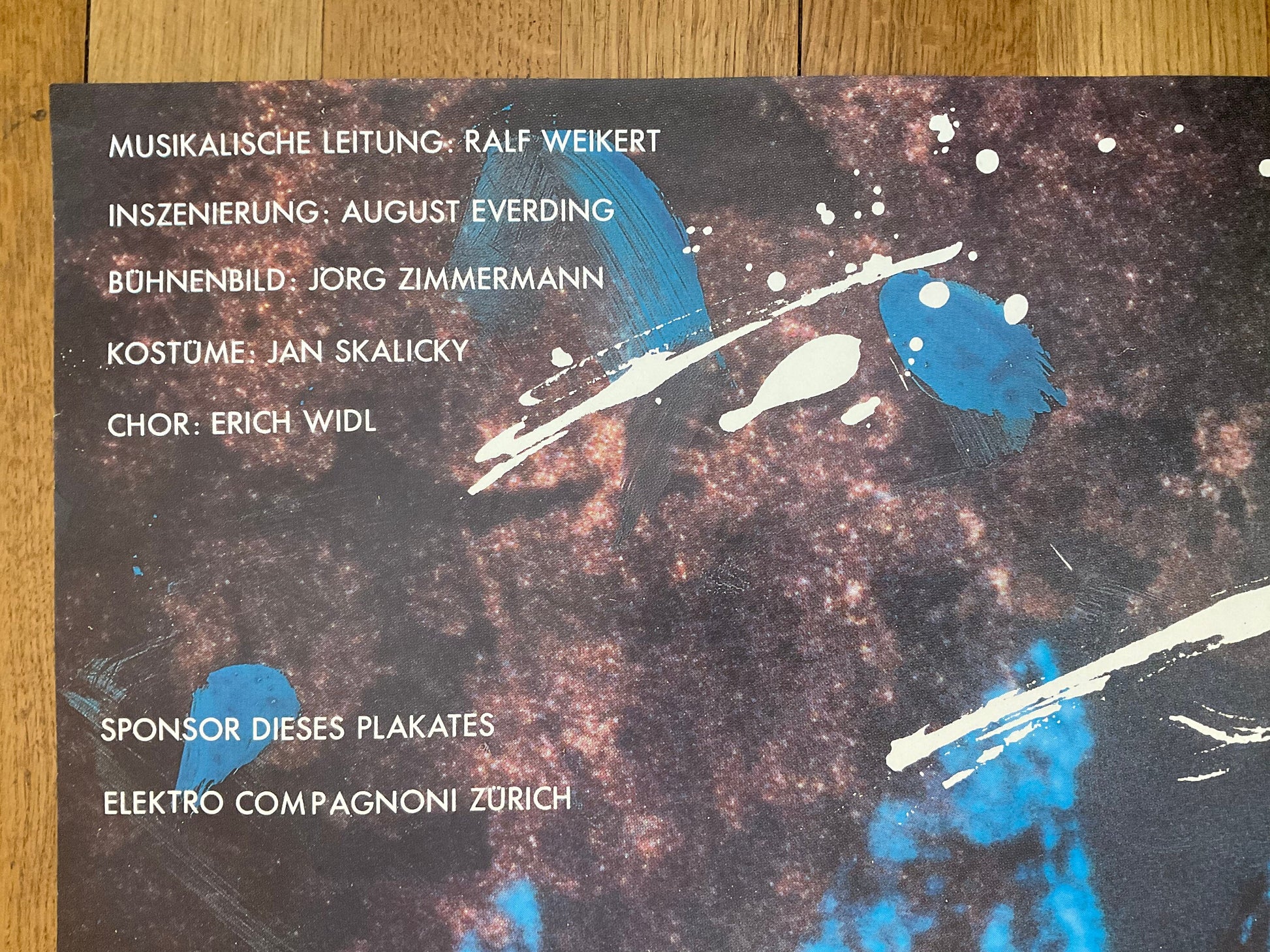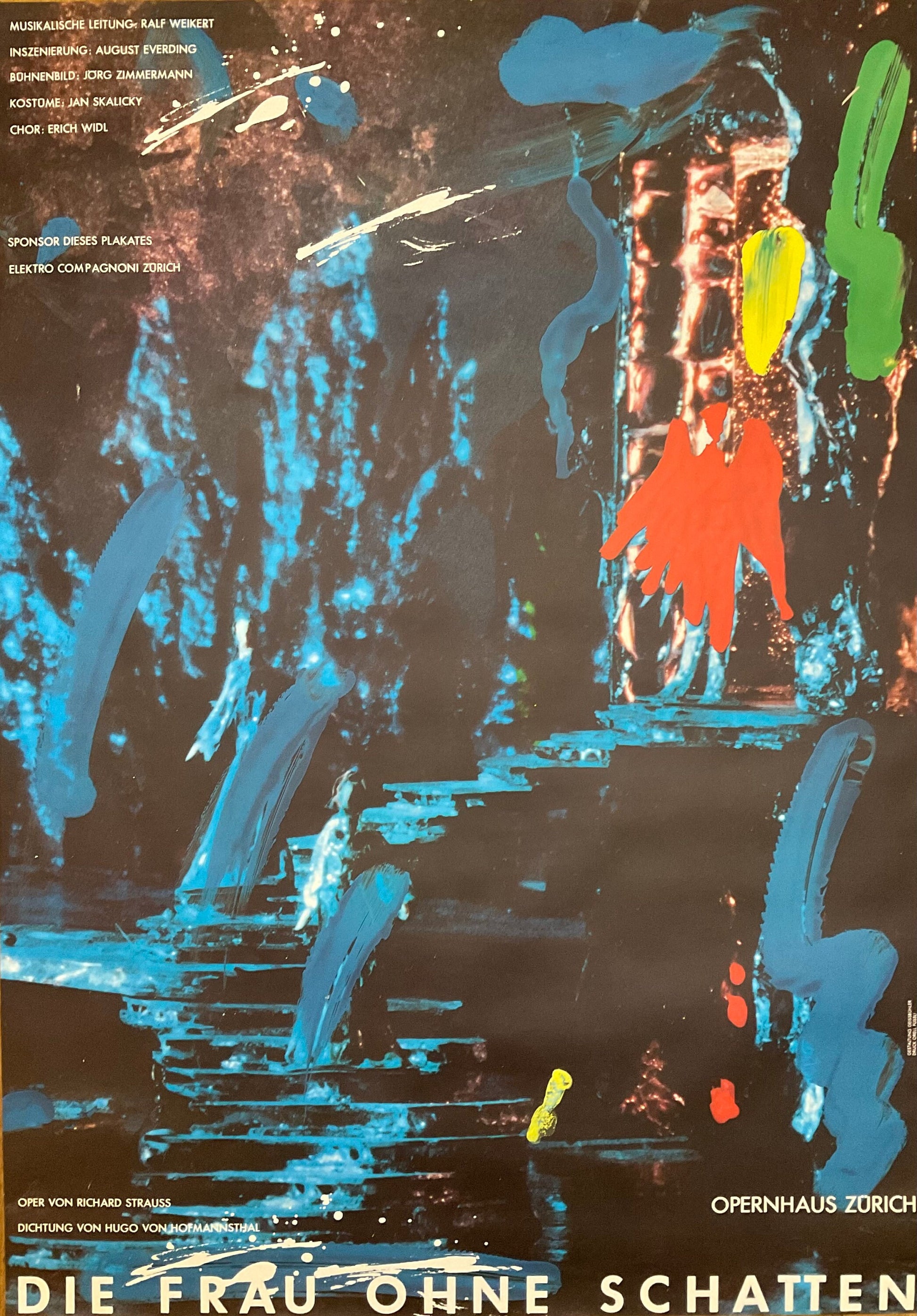 This is an original art poster by Opernhaus Zürich for the performance of "Die Frau ohne Schatten" in 1985.