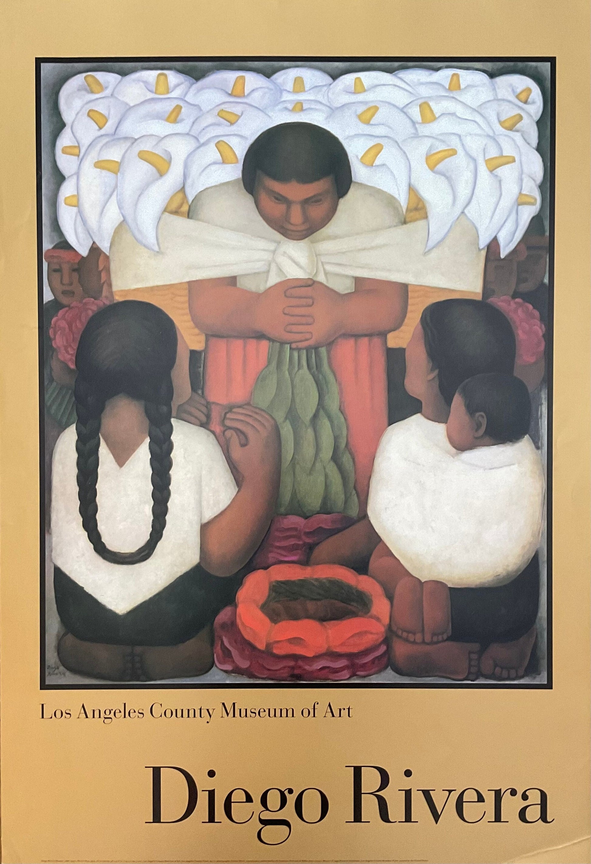 This is an original art poster by Diego Rivera featuring an artwork of a man, three woman and a child and advertising the Los Angeles County Museum of Art. It is undated but might be fro the 1980ties.