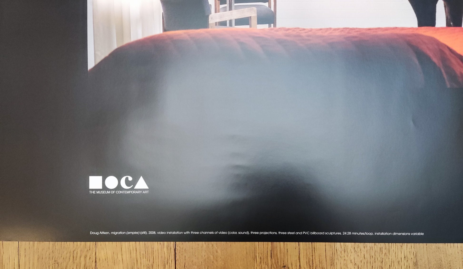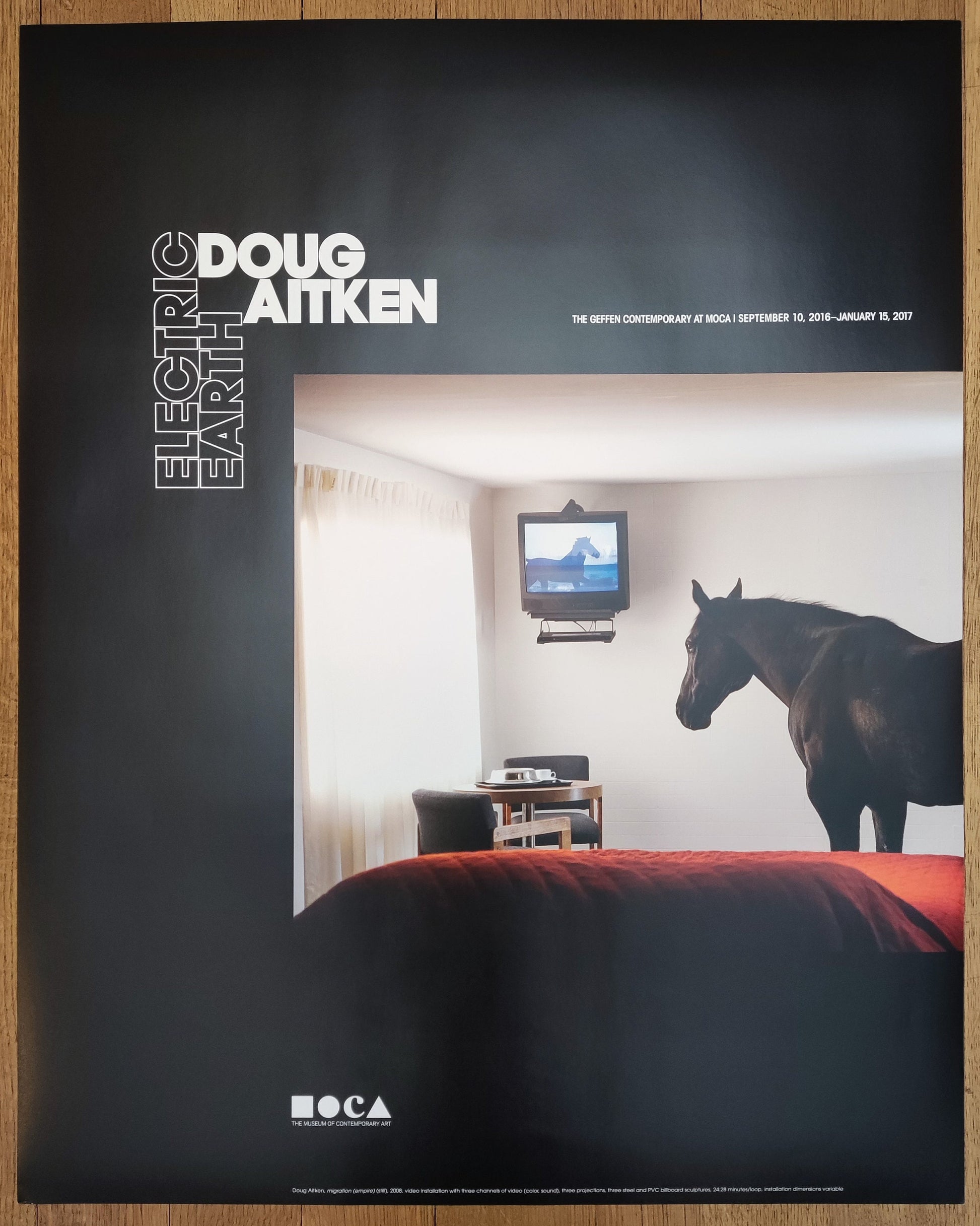 This is an original art poster by Doug Aitken and was released by The Geffen Contemporary at MOCA in Los Angeles in 2020. Doug Aitken (1968-) is a contemporary American artist known for installations incorporating video, photography, sculpture, and performance.