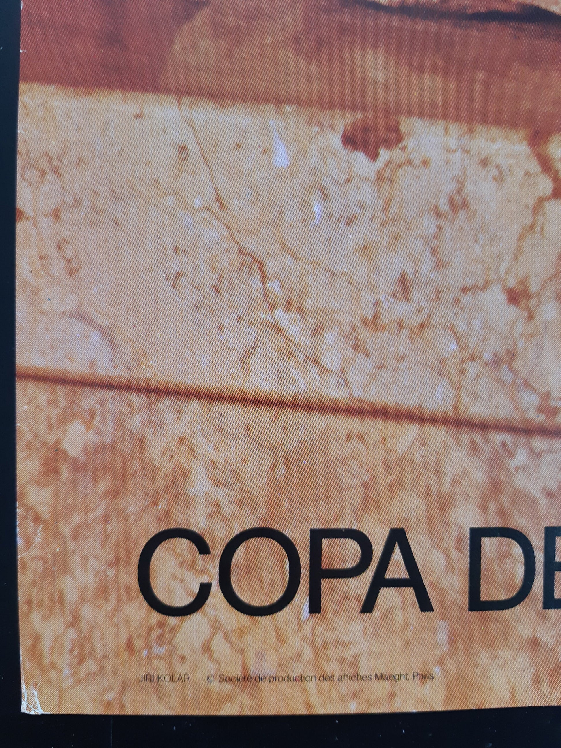 This is an original sports-art poster by Jiri Kolar (Czech, 1914-2002), commissioned for the Football World Cup 1982 in Spain, produced by Maeght, Paris.