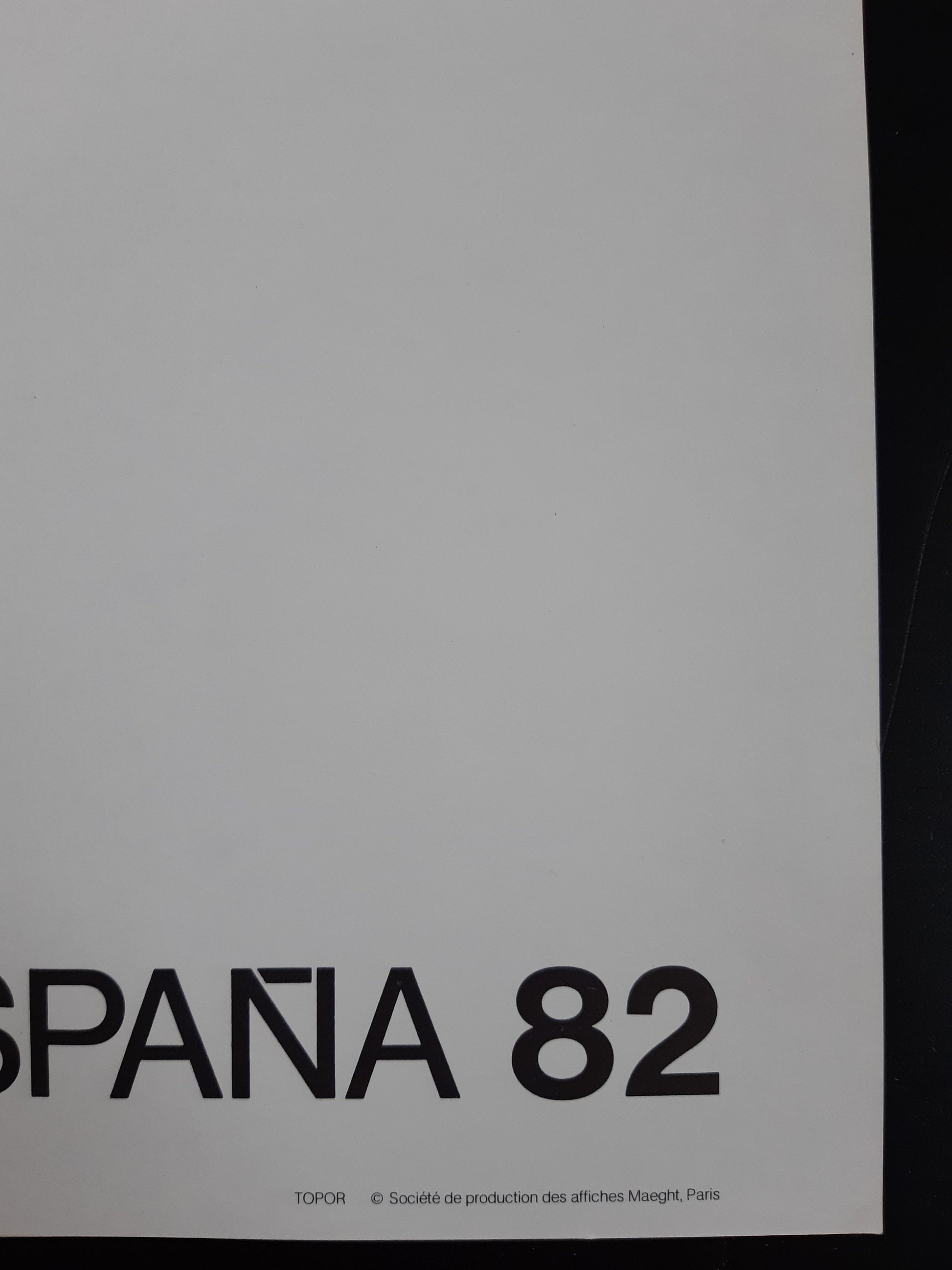 This is an original sports-art poster by Roland Topor (French, 1938-1997), commissioned for the Football World Cup 1982 in Spain, produced by Maeght, Paris.