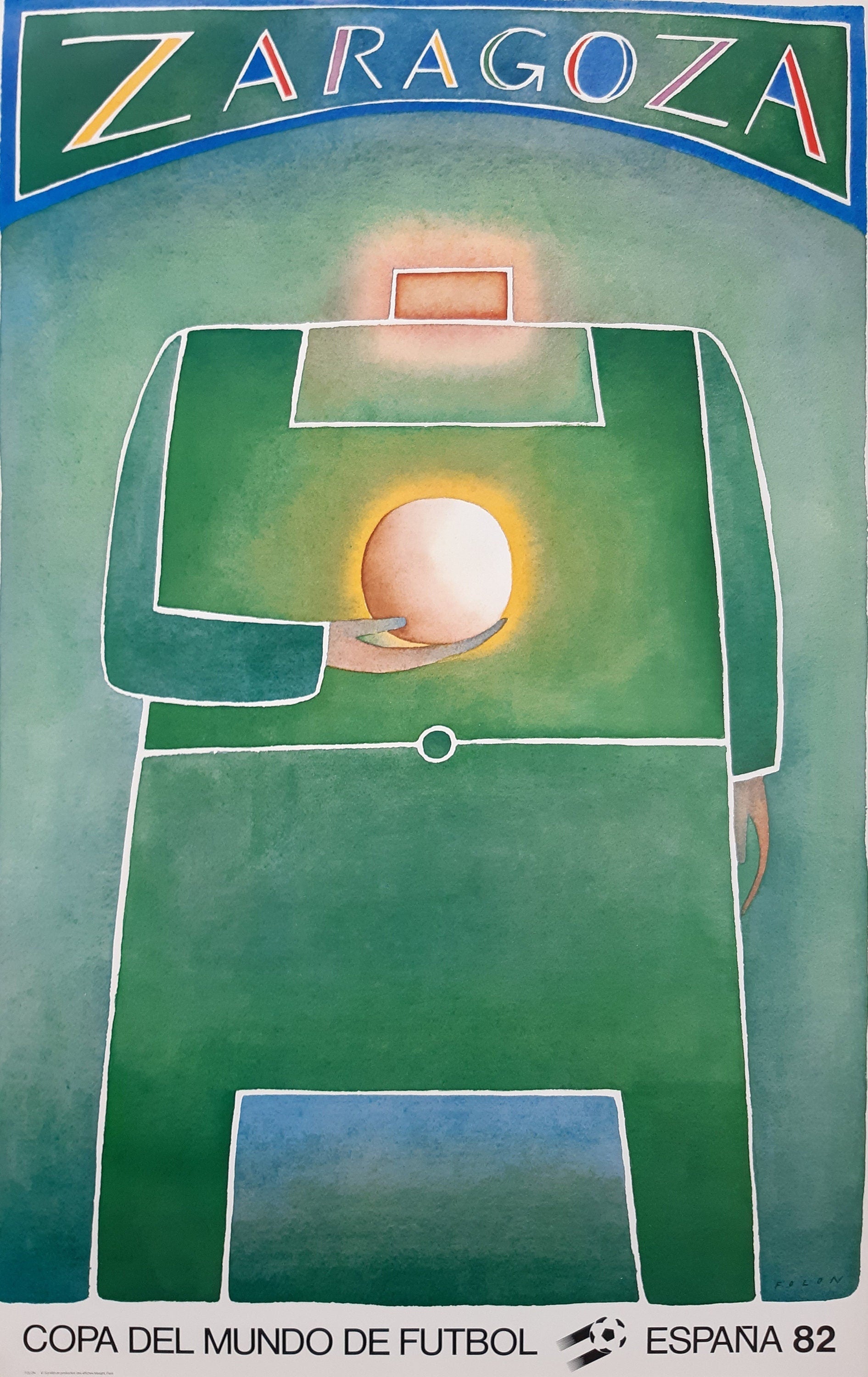 This is an original sports-art poster by Folon, commissioned for the Football World Cup 1982 in Spain, produced by Maeght, Paris.