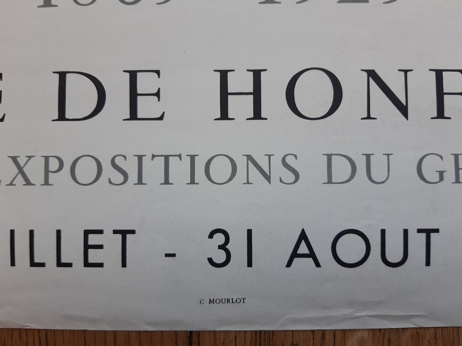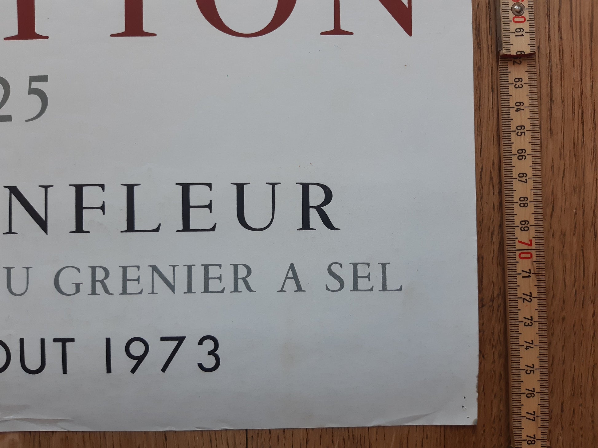 This is an art poster with an artwork by Felix Vallotton for an exhibition in 1973 in Honfleur, France. The poster in in overall good condition, notable one incomplete fold in the upper part and some handling marks at the borders, pinholes.