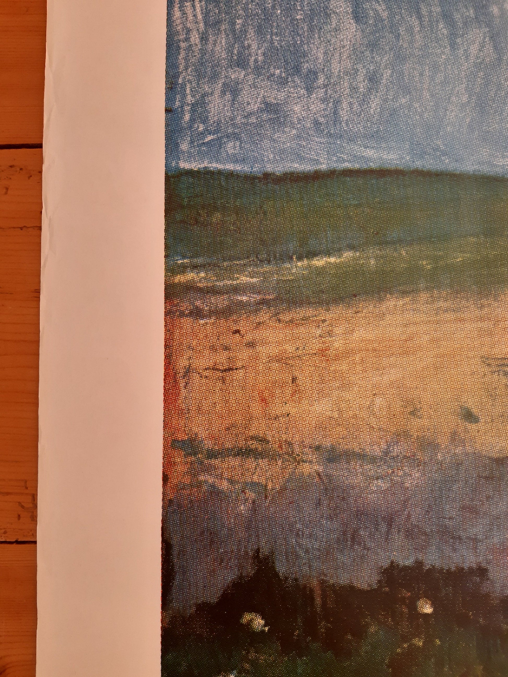 This is an original art poster featuring an artwort of Ferdinand Hodler (March 14, 1853 - May 19, 1918). He was one of the best-known Swiss painters of the nineteenth century. His early works were portraits, landscapes, and genre paintings in a realistic style.