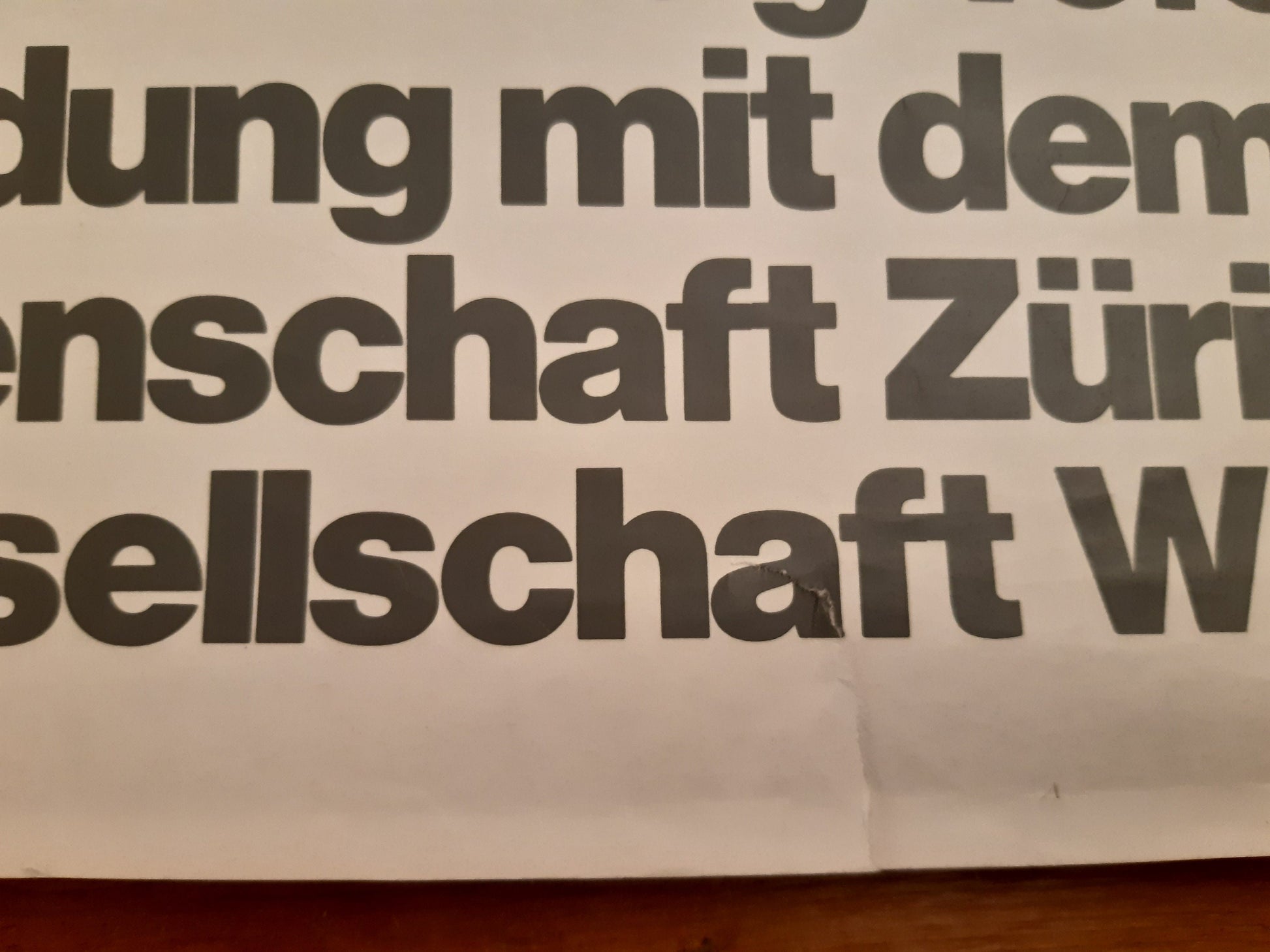 The poster has been printed 1970 for an exhibition in Switzerland. The poster is in fair/used condition with several flaws as some small tears (see photos).