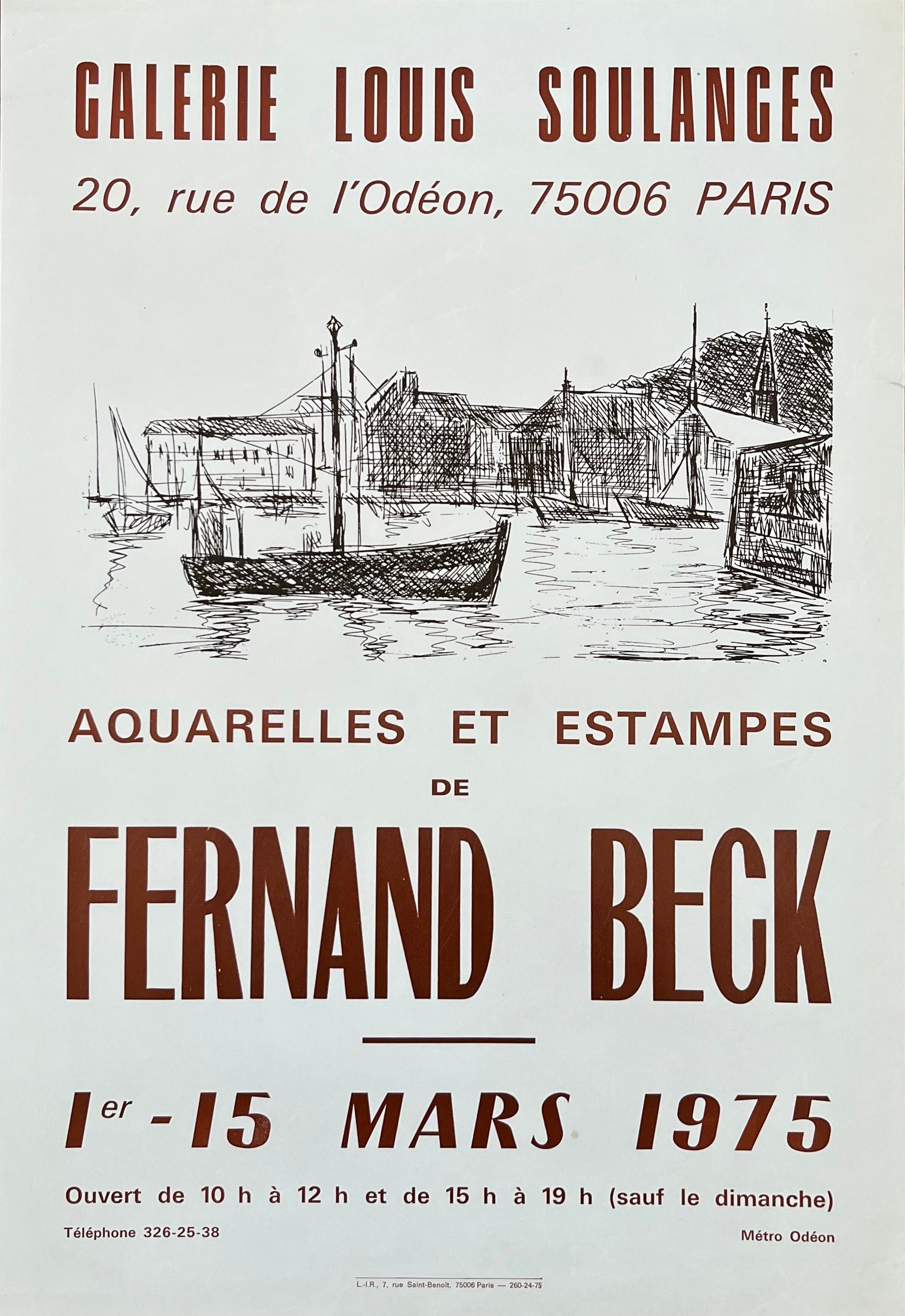 This is an art poster by Fernand Beck featuring a work from his "Aquarelles et Estampes" Series. It advertises an exhibition at the Galerie Louis Soulanges in Paris in 1975.
