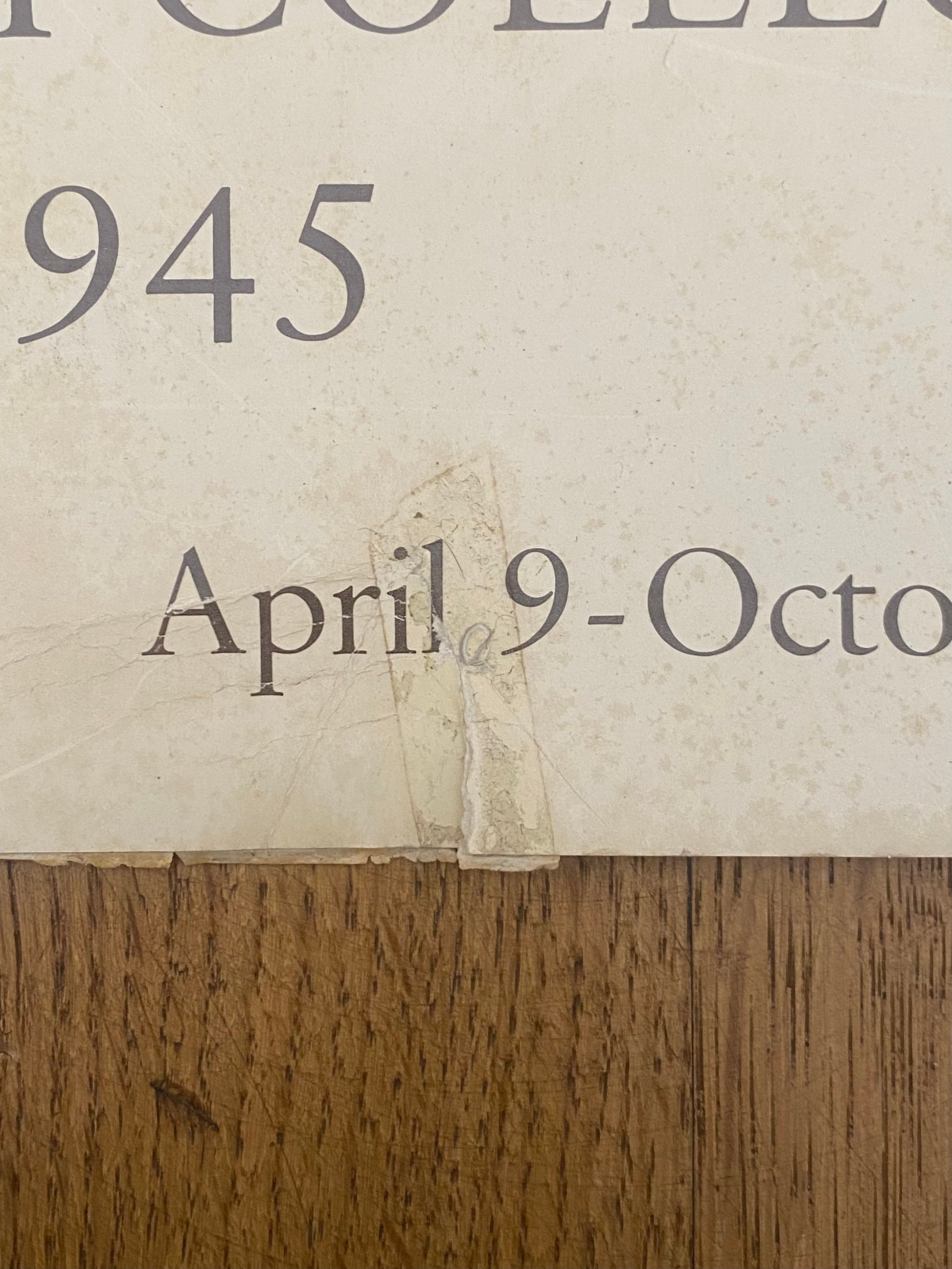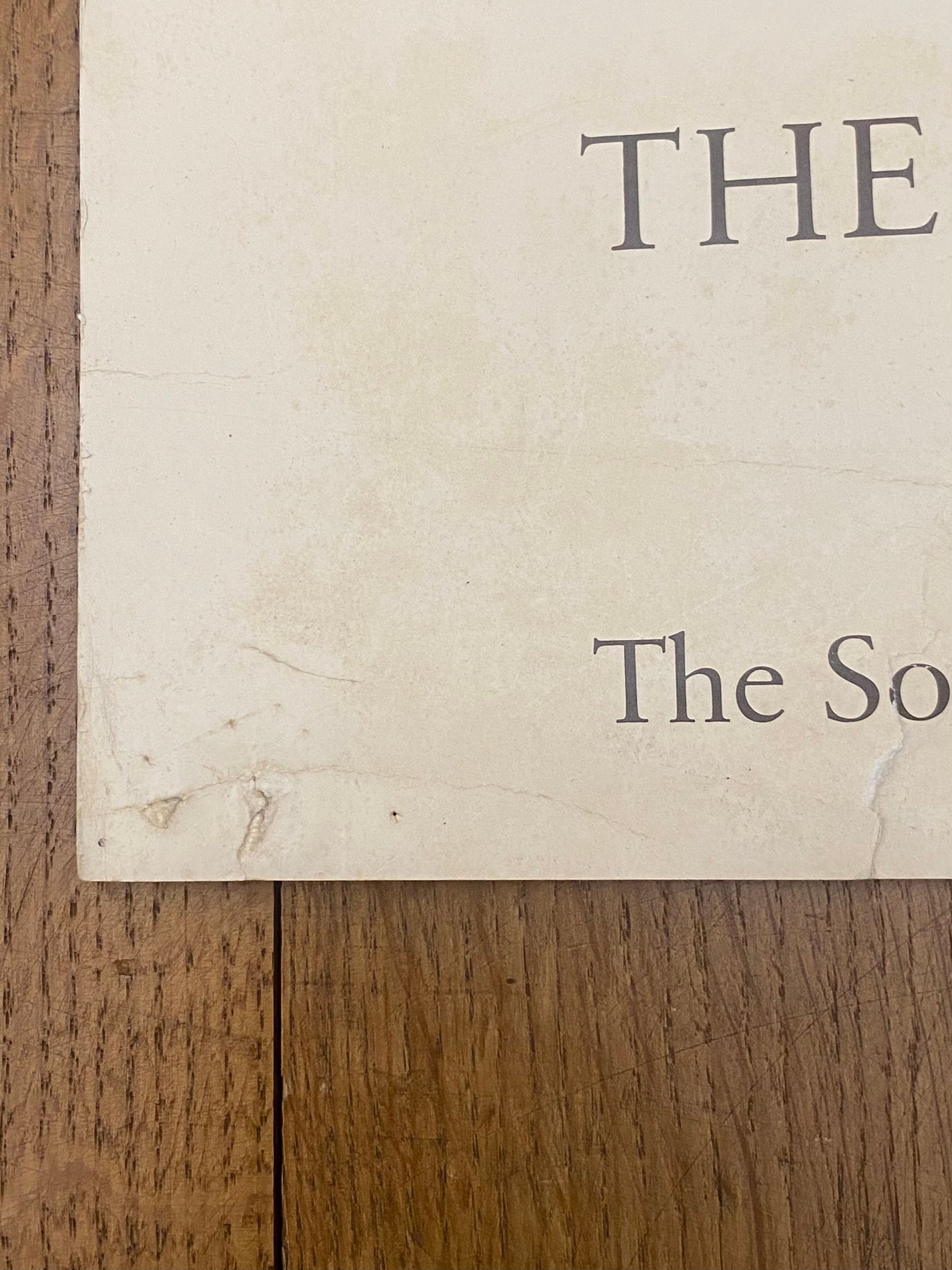 The poster is in used condition with general yellowing, stains, pinholes at each corner, foxing and tears at the borders (5mm-2cm). If it is framed unrestored, the various flaws give the poster a great vintage charm.