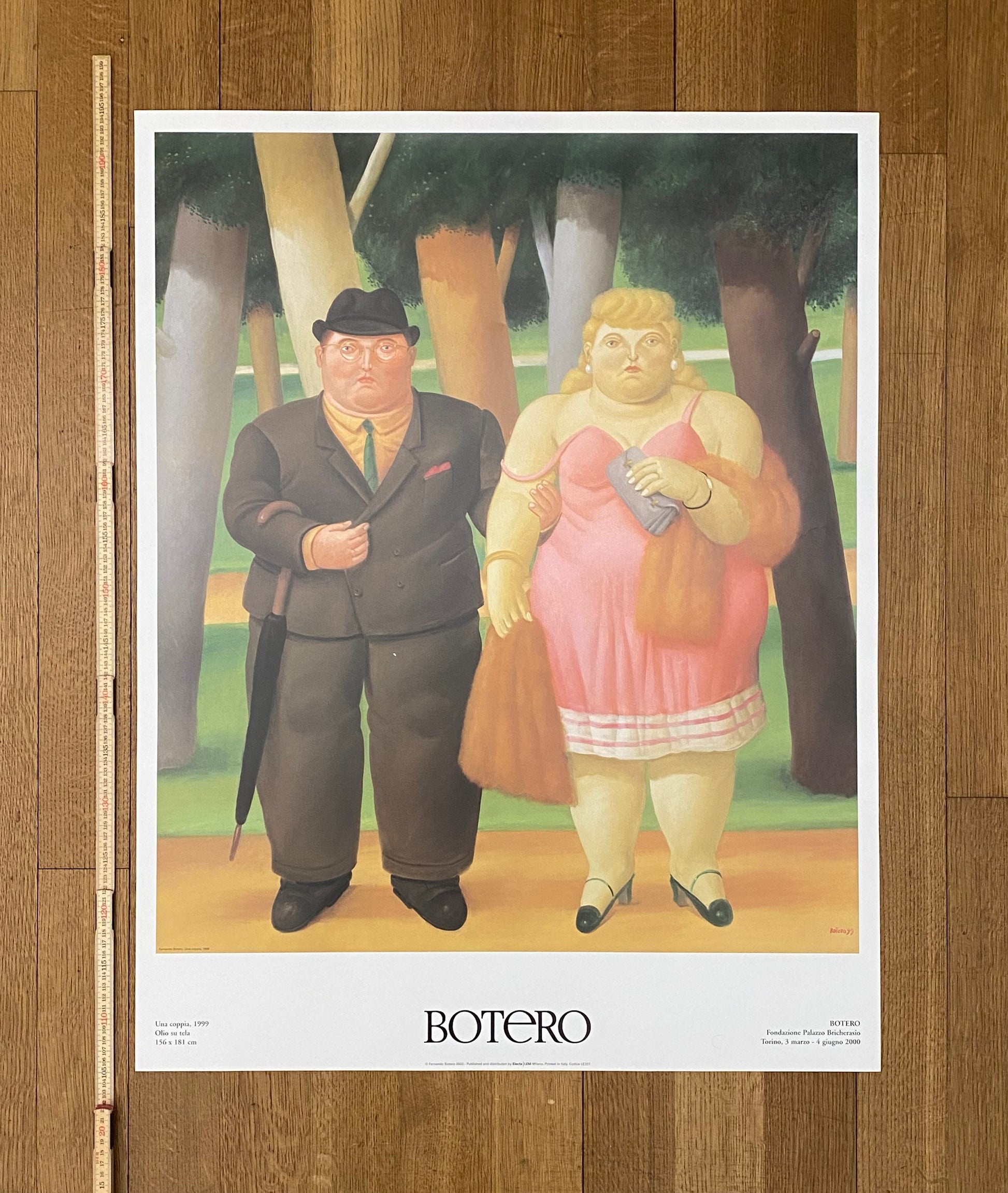 This is an original art poster by Colombian Fernando Botero featuring an abstract artwork with a man and a woman standing next to each other.