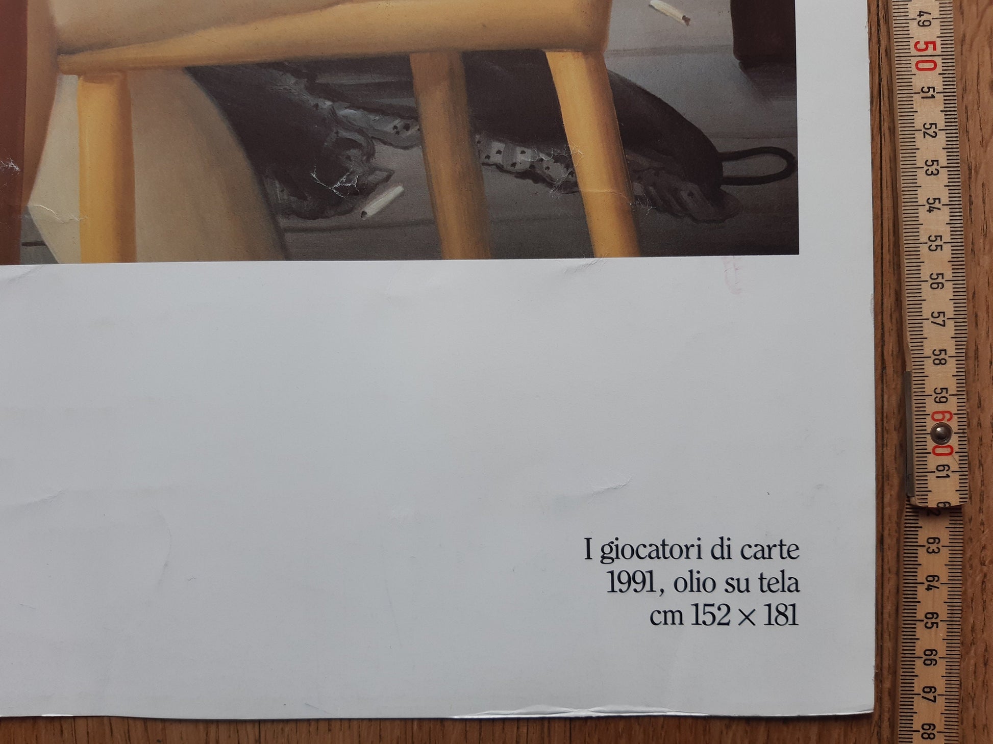 This is an original art poster with the artwork "The card-players" of Francisco Botero, advertising an exhibition in Roma, Italy, in 1991.