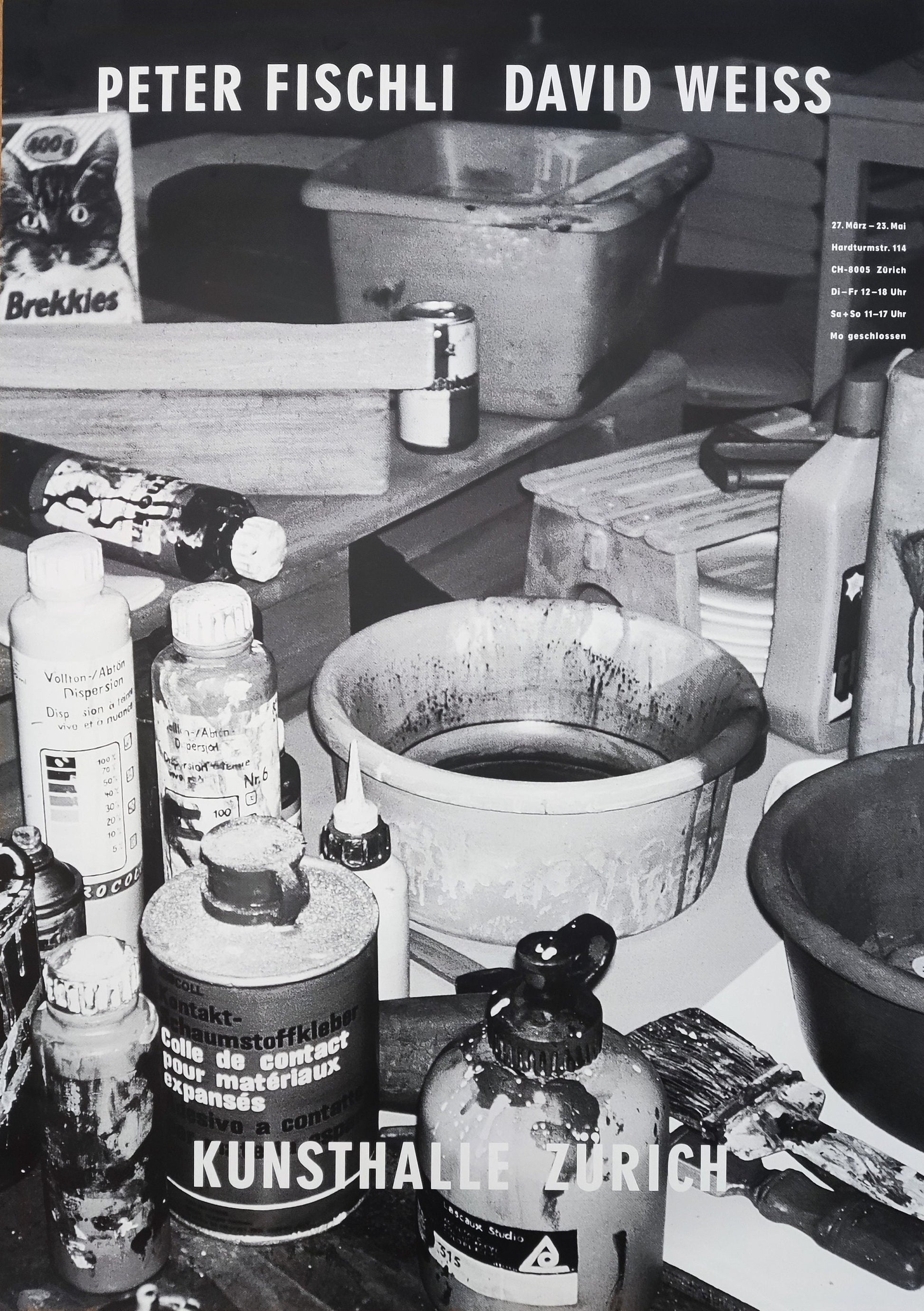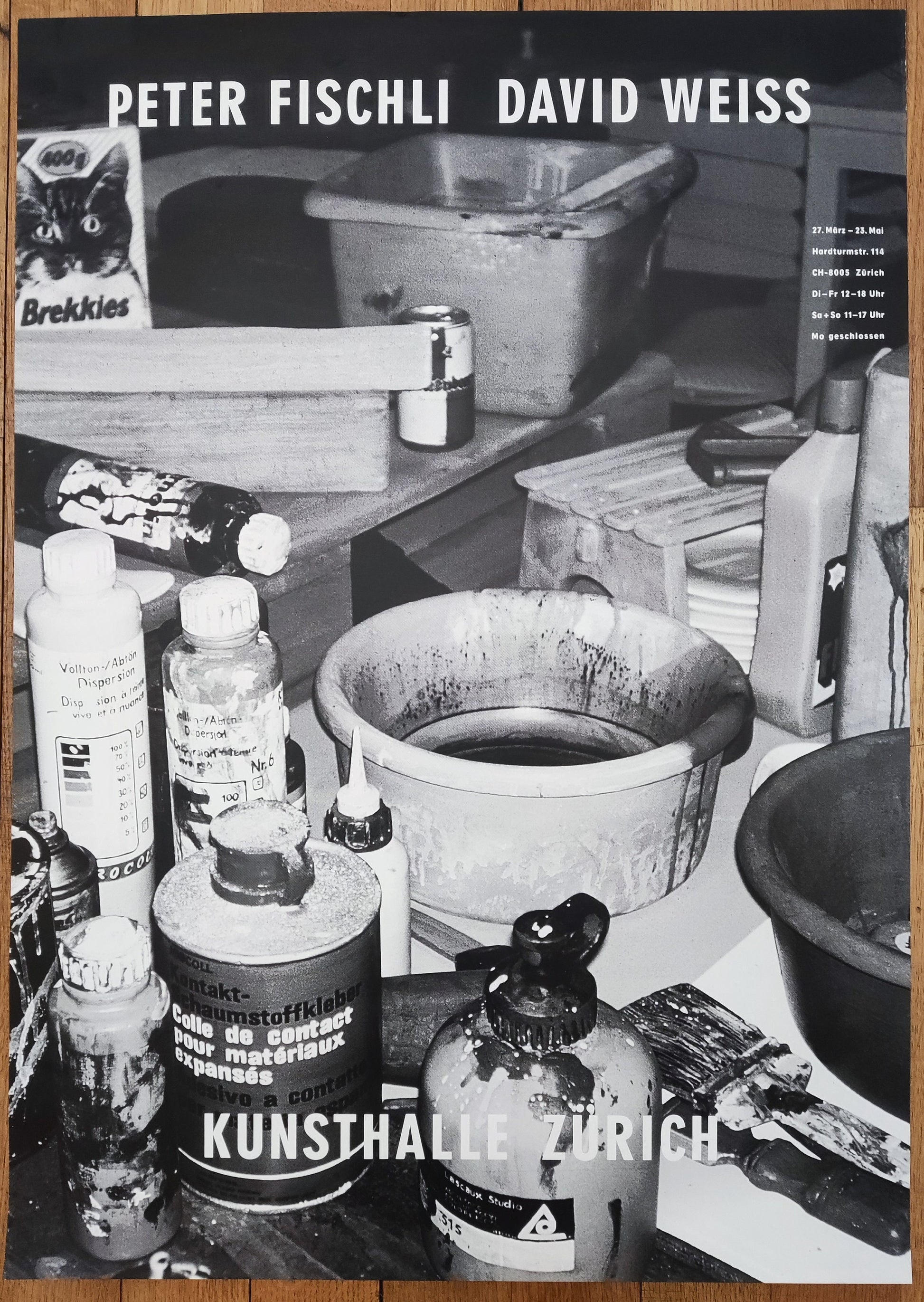 This is an original Peter Fischli and David Weiss lithograph poster that was released by Kunsthalle Zurich in 1993.