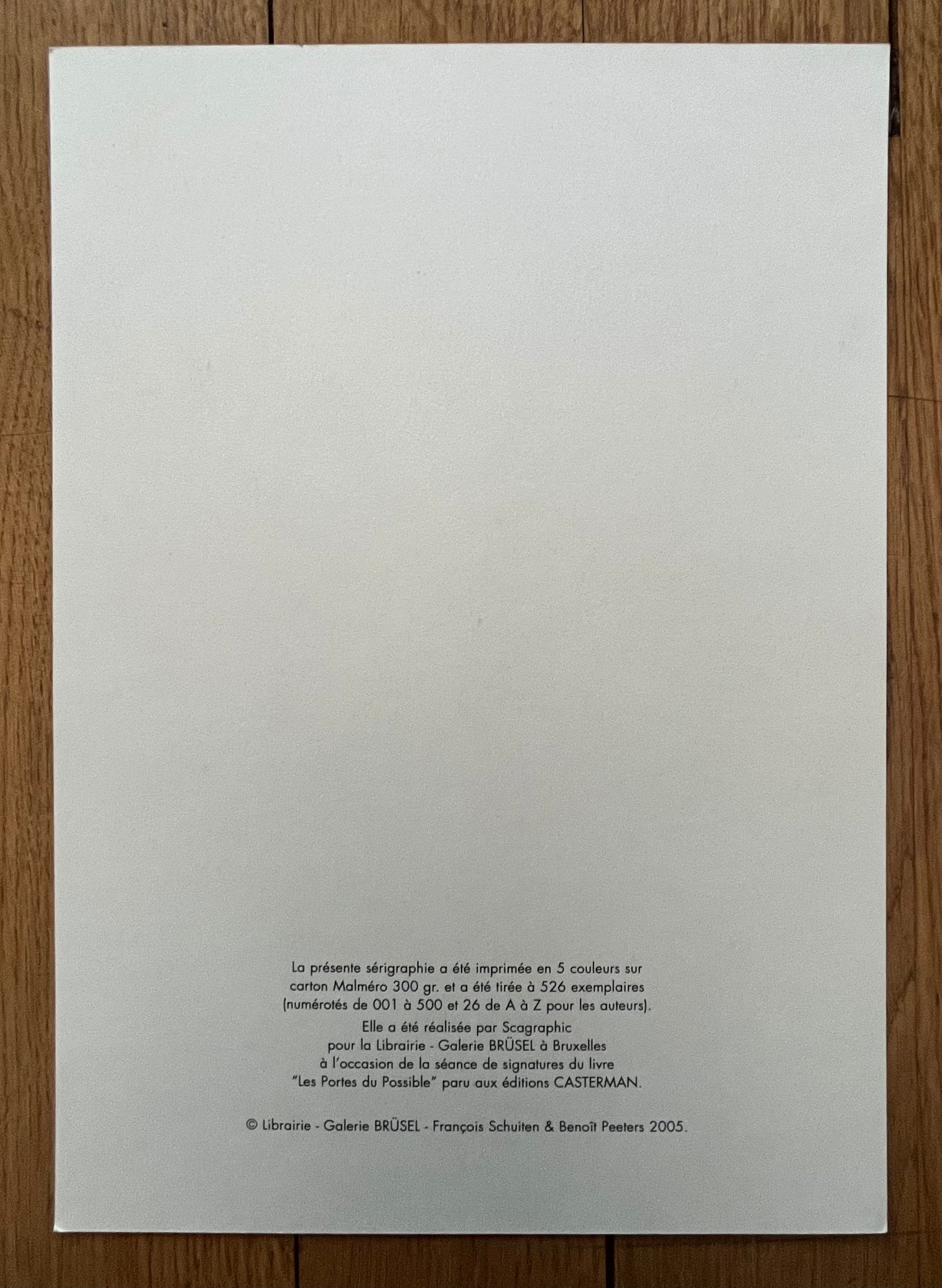 The poster is in good condition, it is hand signed /numbered by B. Peeters and F. Schuiten
