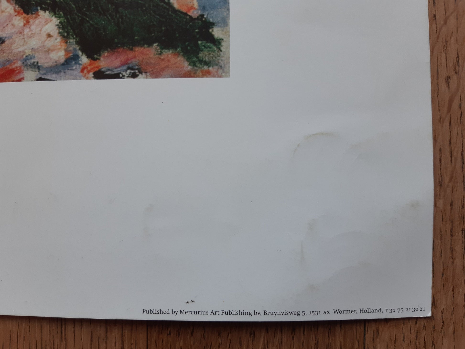 This is an original art produced 1993, featuring the artwork "L'olivier près de L'Estaque", painted 1905. The print has been folded, some stains are visible.