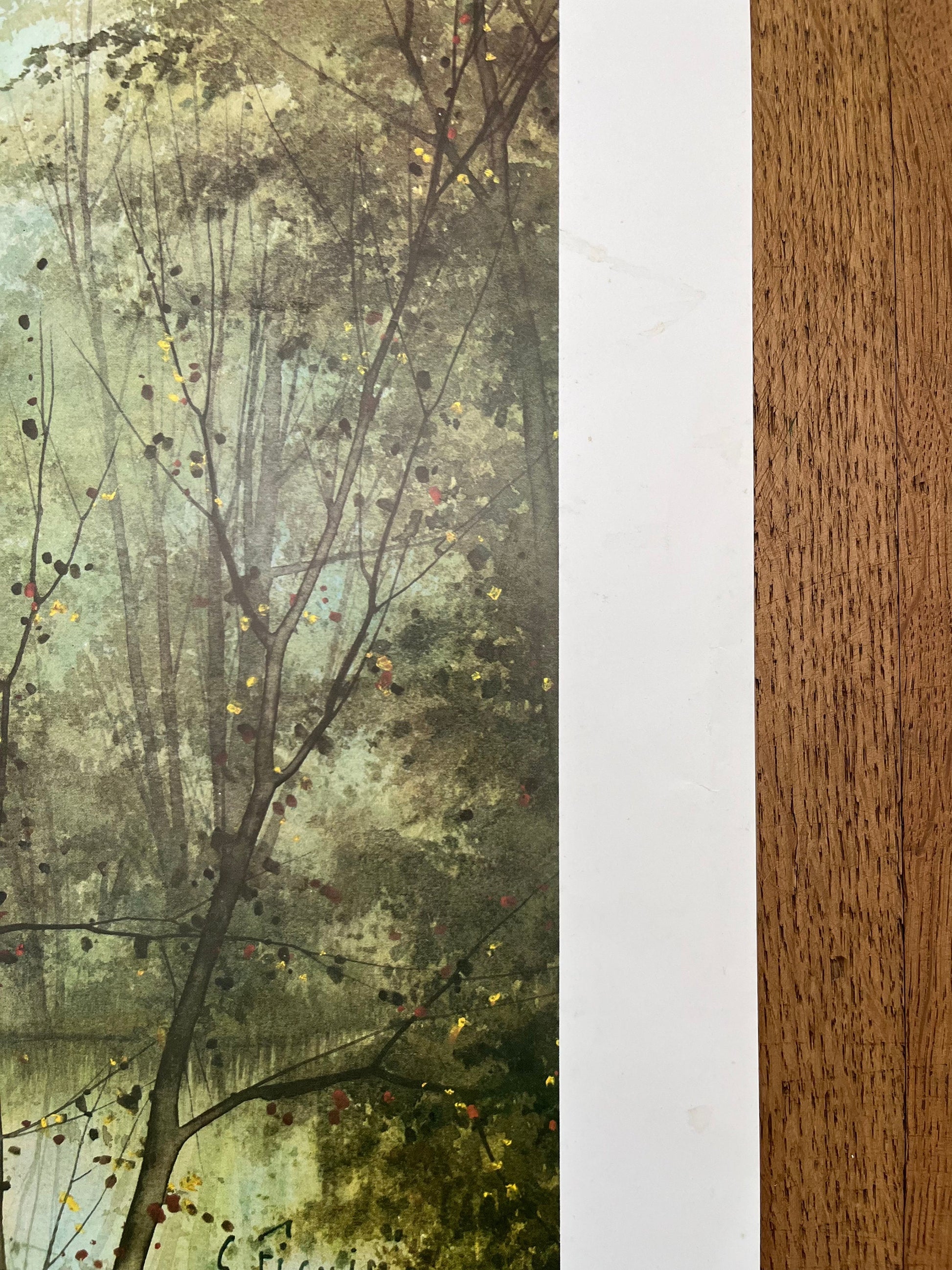 This is a beautiful art poster by Gilles Figuier. It is in good condition with a small tear, light signs of handling, mild foxing and stains.