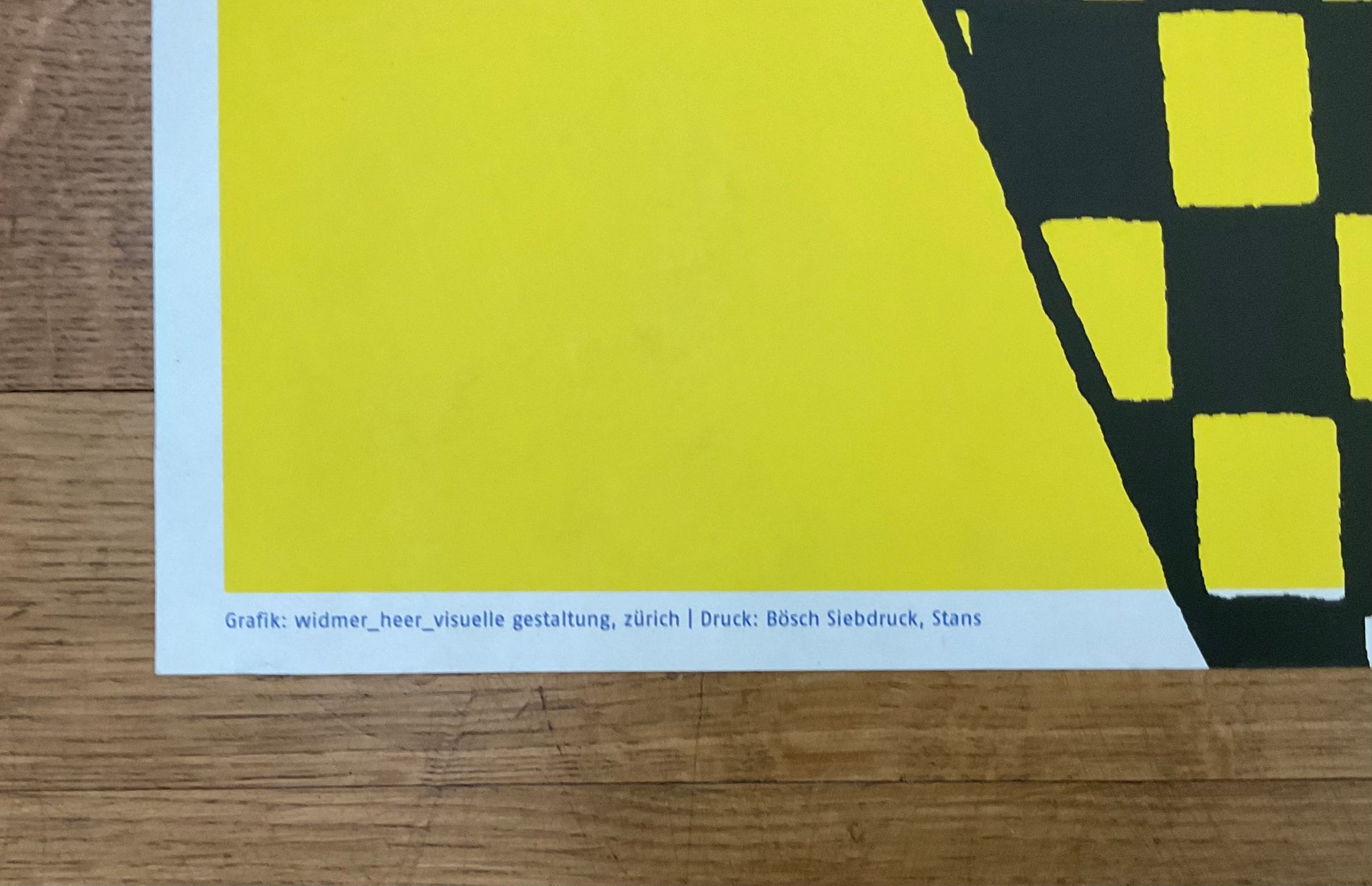 This is an original art poster that advertises an exhibition about the Swiss phenomenon of the comic character Globi. The poster was designed by widmer_heer_visuelle gestaltung in Zurich. The exhibition took place in several museums all around Switzerland from 2003 until 2005.