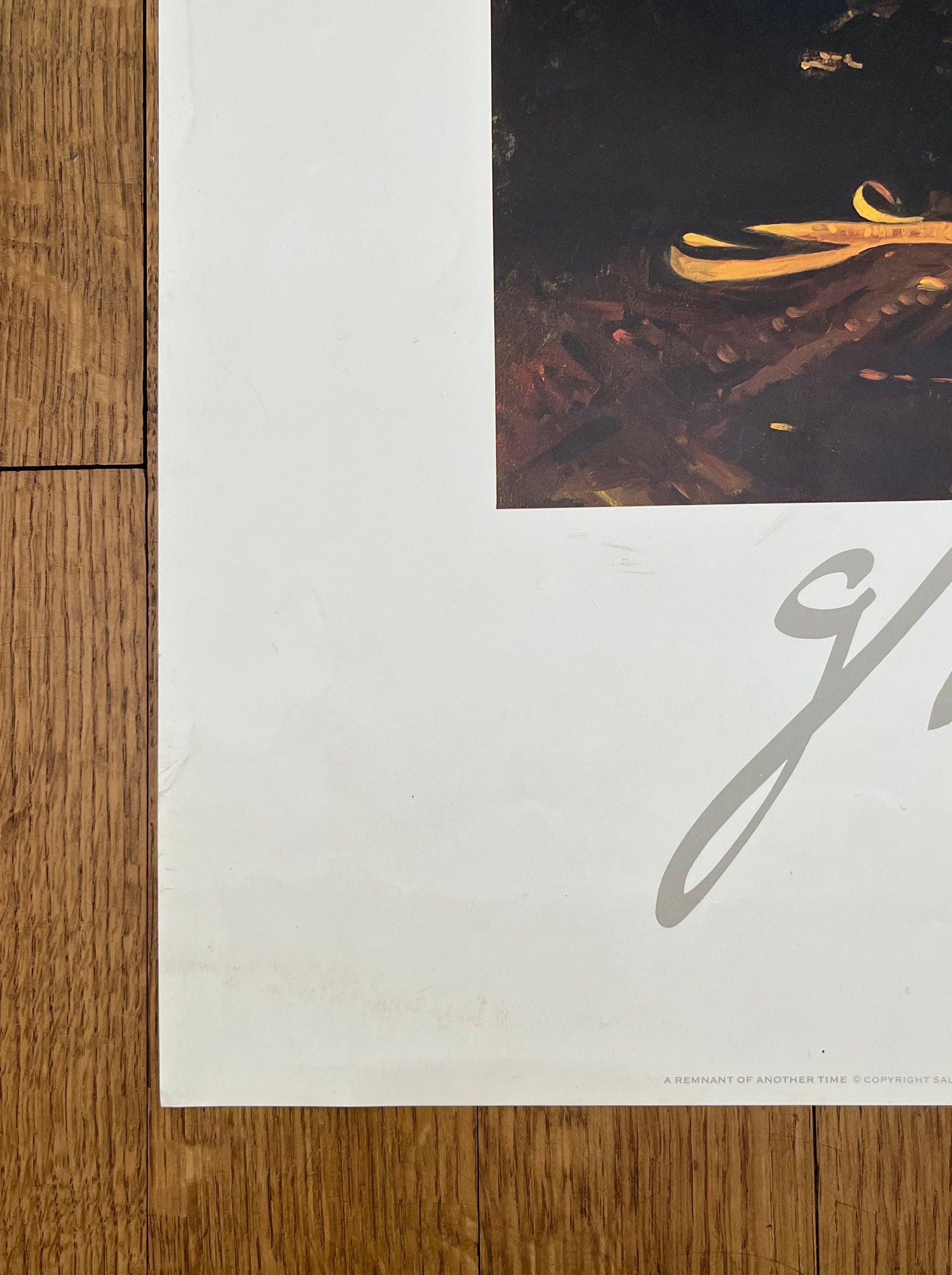 This is an original art photo poster by Gordon E. Snidow which was released by the Gilcrease Museum in Tulsa Oklahoma in 1981. The painting on the poster is called Remnant of Another Time.