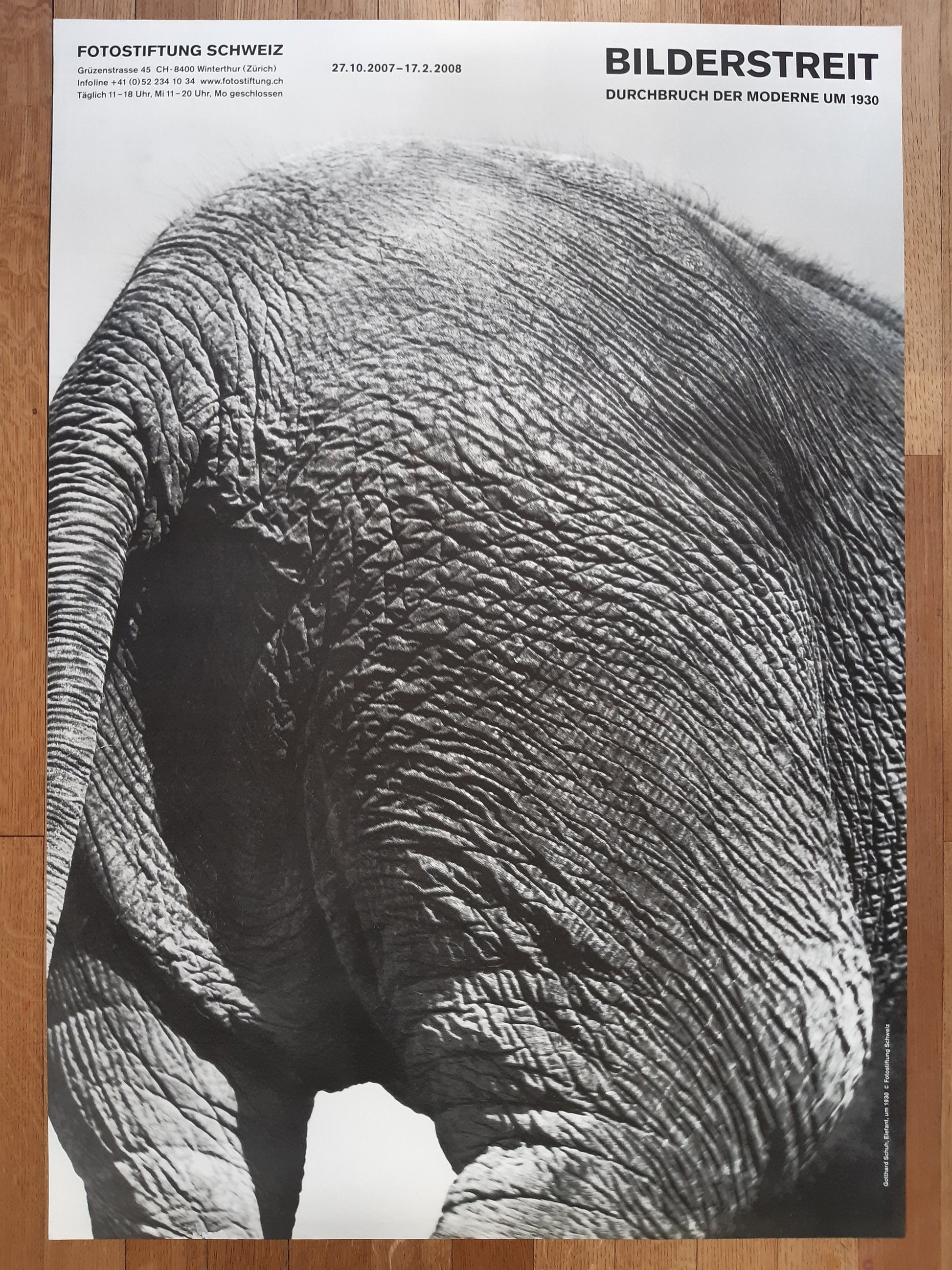 This is an original art poster advertising the Fotostiftung Schweiz. The exhibition "Bilderstreit" features Gotthard Schuh, which is the artist of the image on the poster.