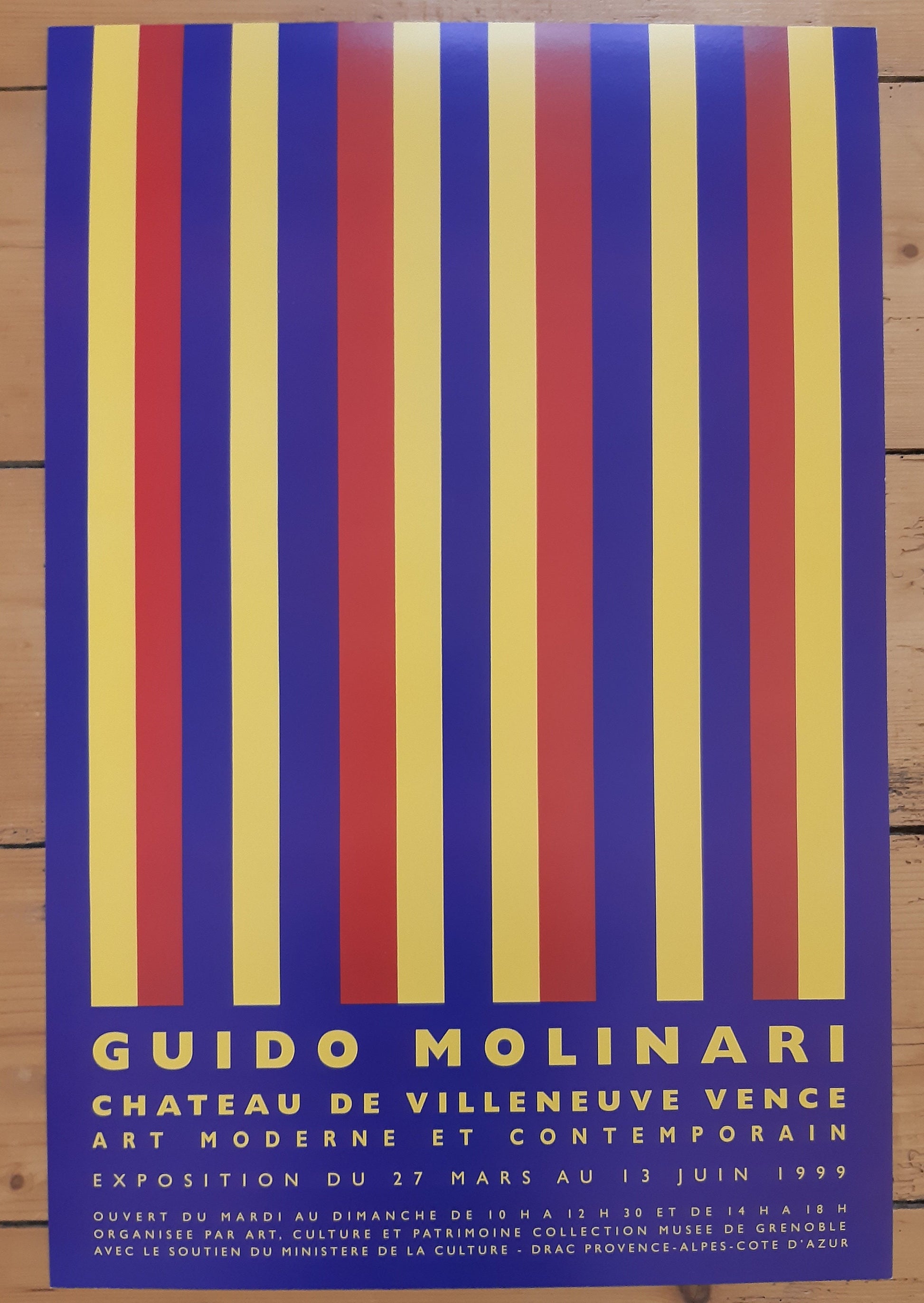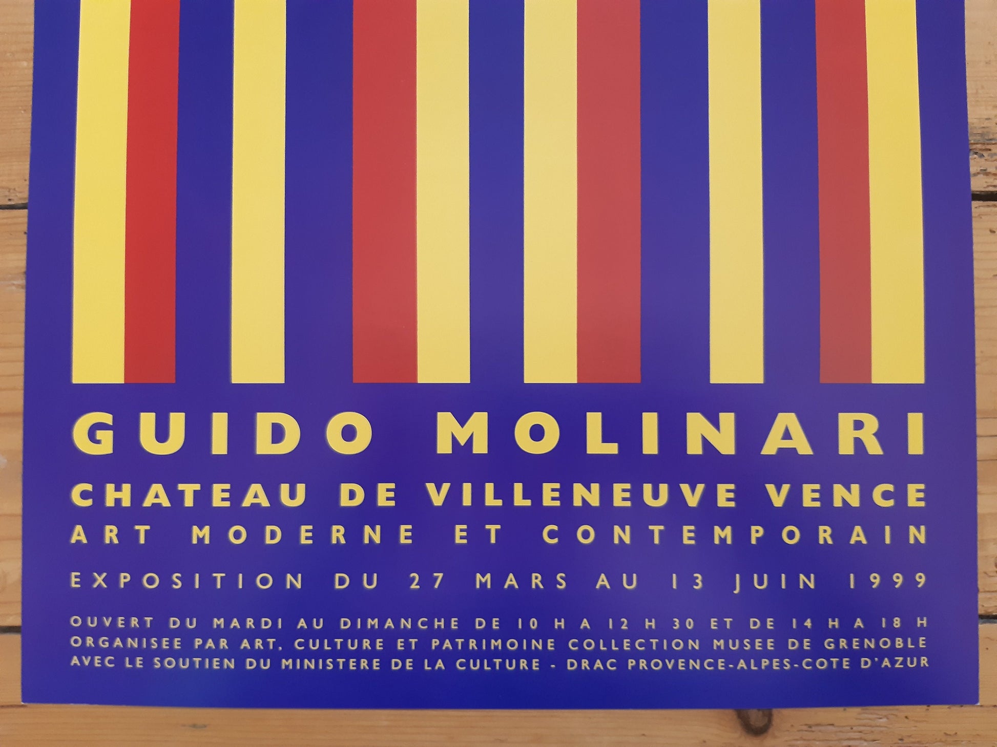 This is an original art poster advertising an exhibition in Vence, France in 1999, featuring a painting by Guido Molinari. The poster is in very good condition with fresh and unfaded colors. It is in near mint condition.
