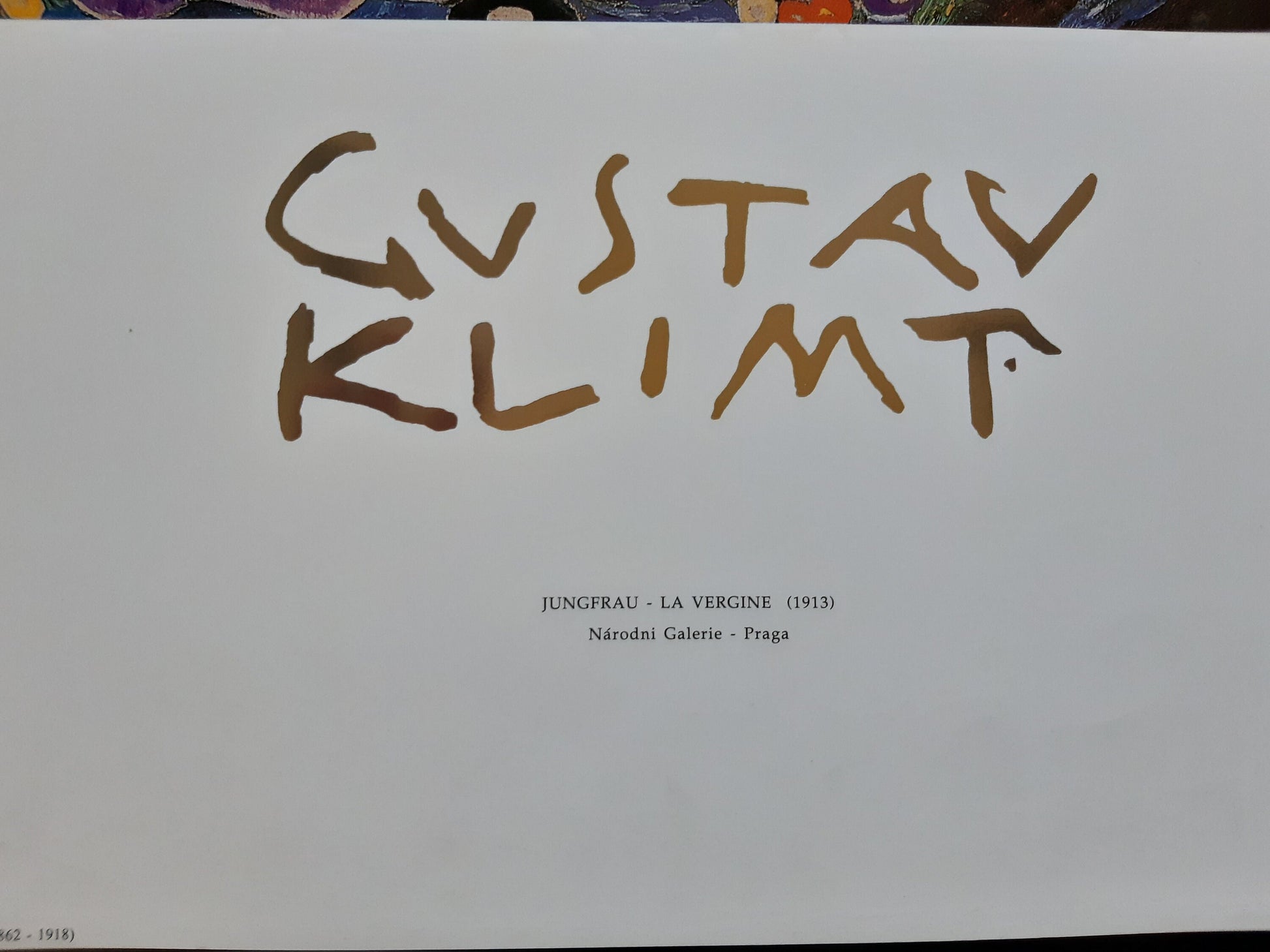 This is a beautiful art print by Gustav Klimt. It has been printed in Milano, Italy. The painters name is in golden letters cut out of the paper.