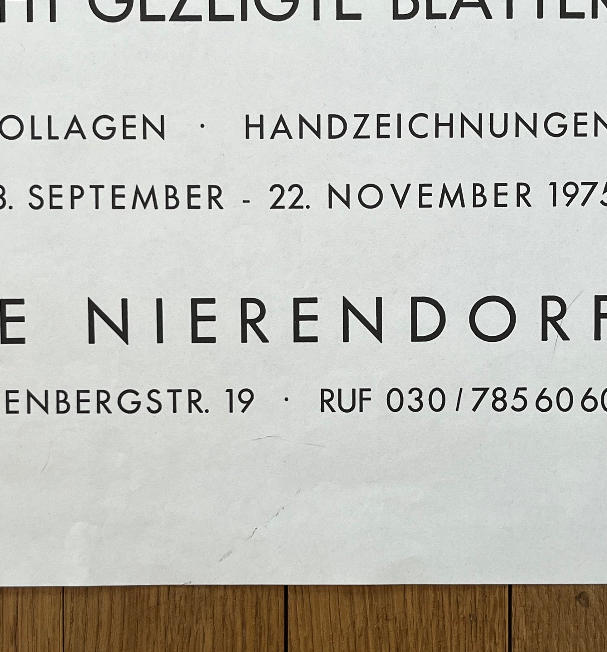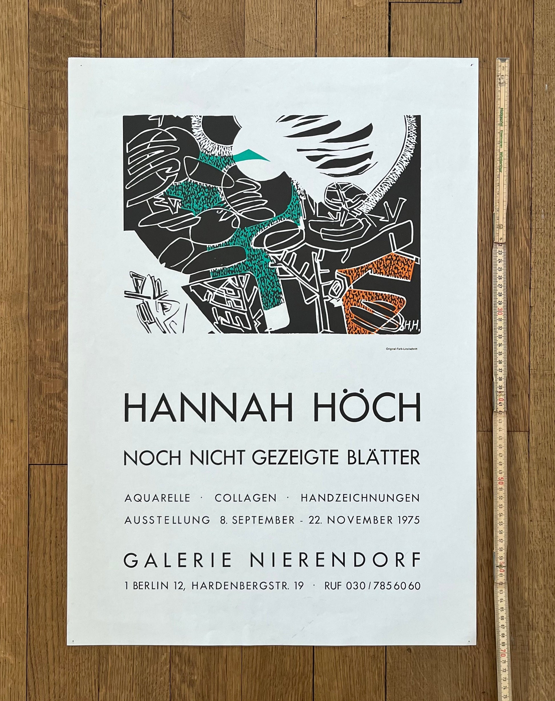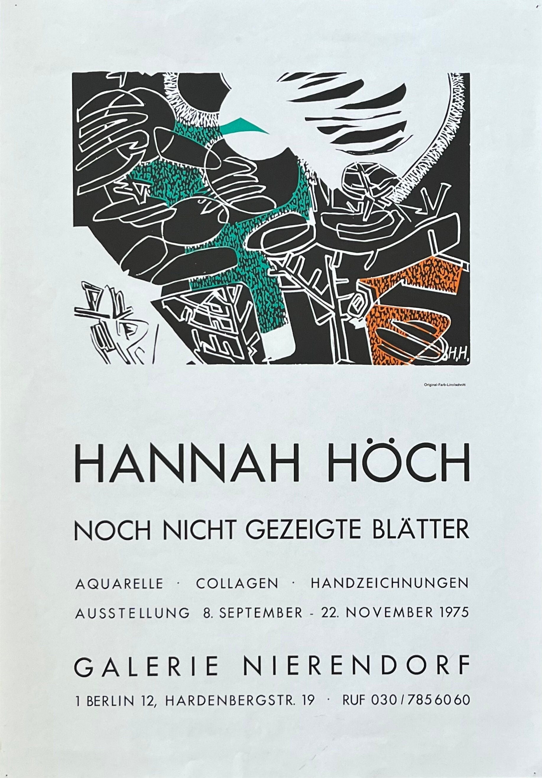 This is an original silkscreen-lithography art poster by Hannah Höch advertising the "Noch nicht gezeigte Blätter"-Collection exhibited at the Galerie Nierendorf in Berlin, Germany in 1975.
