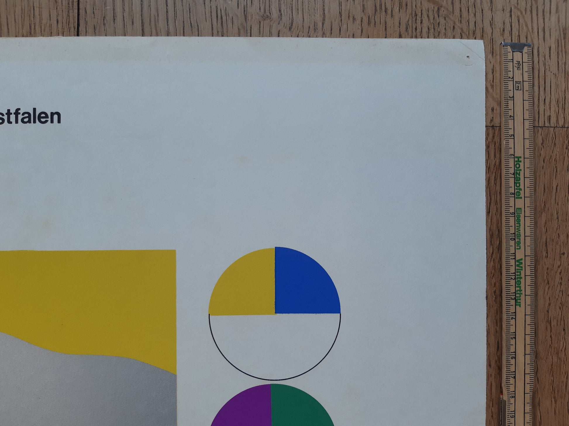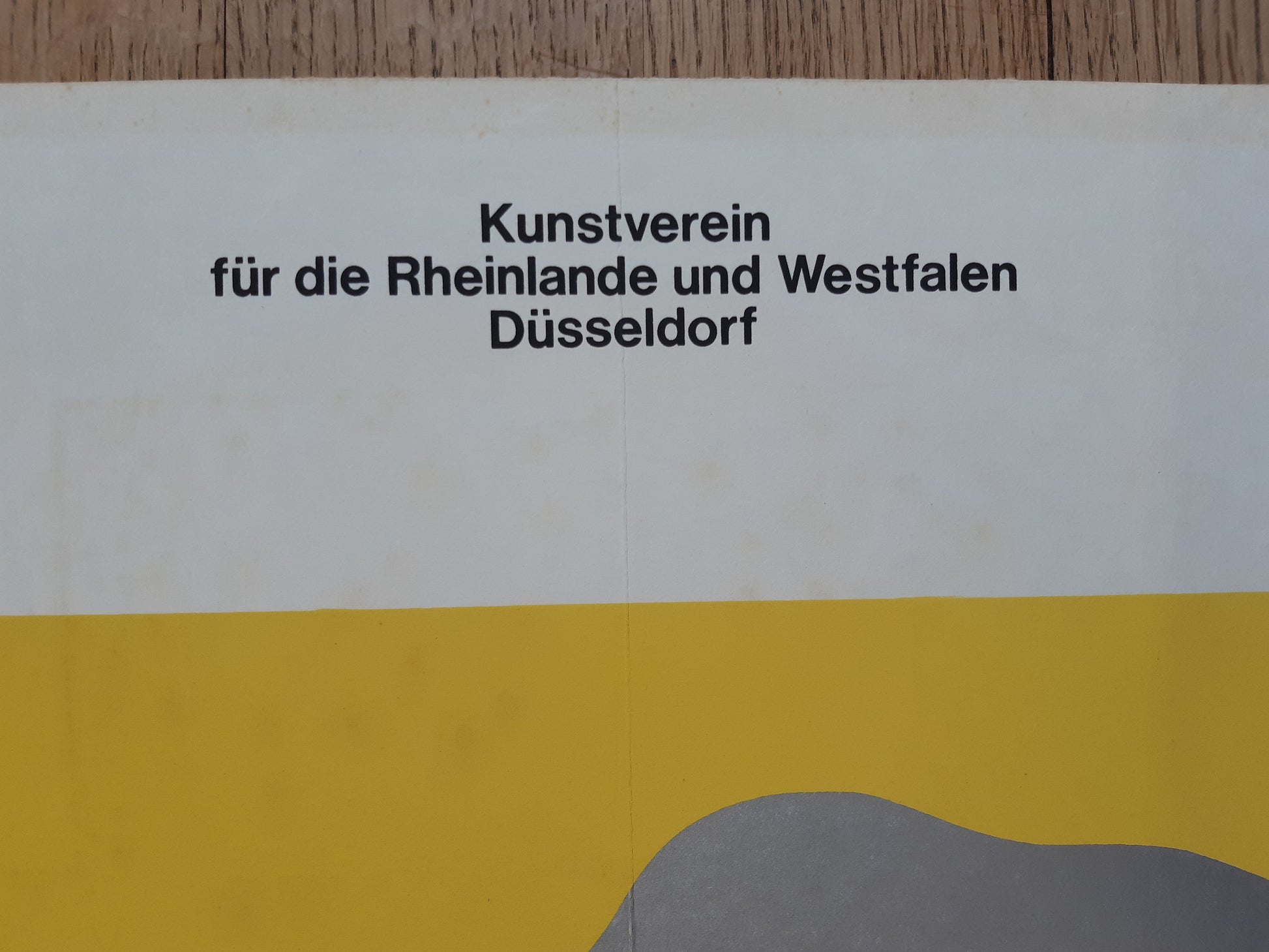 This is a beautiful art exhibition poster made for the Kunsthalle and Kunstverein Düsseldorf, Germany, in 1974 with art of Heinz te Laake (German, 1925-2001). It is a silkscreen-lithograph which is in used and folded condition with some sings of handling and very mild foxing, pinholes.