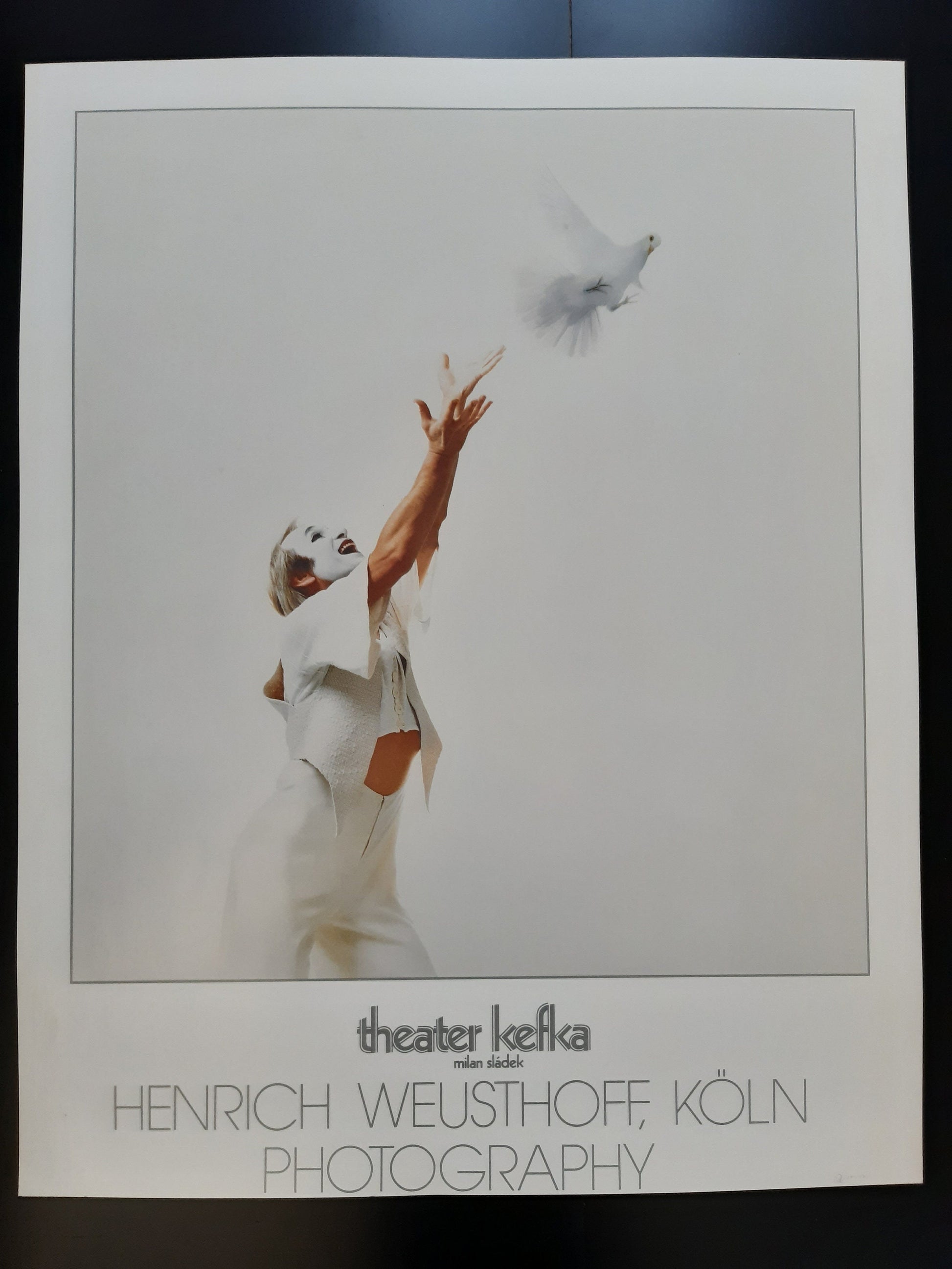 This is an original art poster featuring a photographic art work by Henrich Wuesthoff. The model is Milan Sládek (* 23 February 1938 in Streženice, today Slovakia) is a mime, director and author. The artist, who lives in Cologne, became known through the artistic figure Kefka, which he embodies.